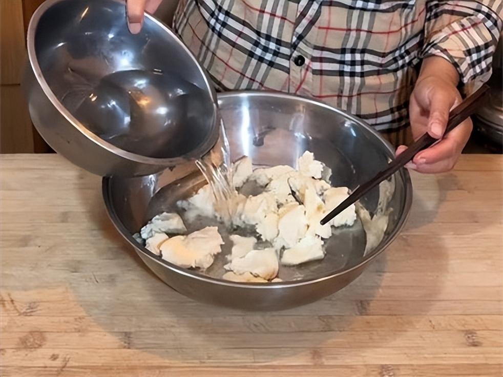 2、老酵子掰碎了用溫水泡一下,千萬別倒開水。