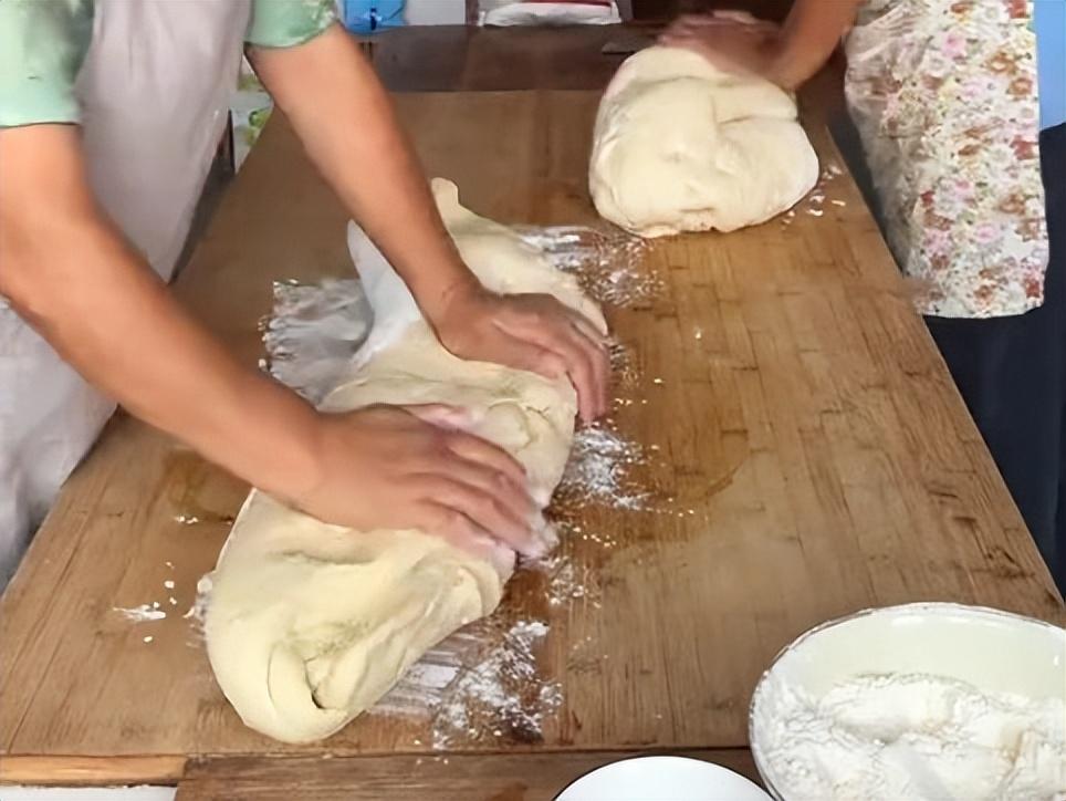 7、少量多次加水,不停的揉麪,蒸很多饅頭的情況下,一二十斤面的揉麪是個力氣活。