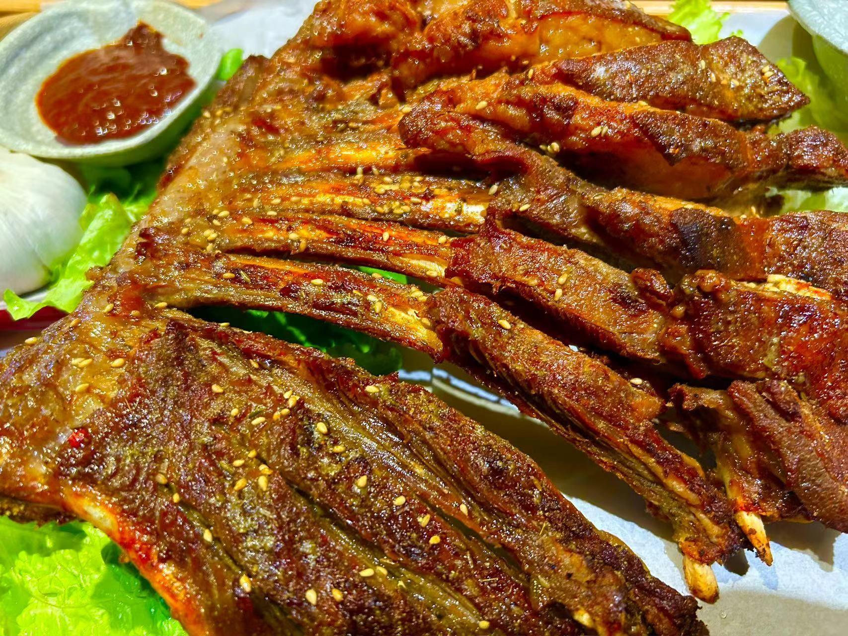 羊肋排真的太好喫了,它是連着肋骨的肉,從腰子延伸至分水骨之間。肥瘦相間,脂肪覆蓋率好,質地鬆軟,鮮嫩多汁。骨邊肉帶淡淡骨香,羶味輕。