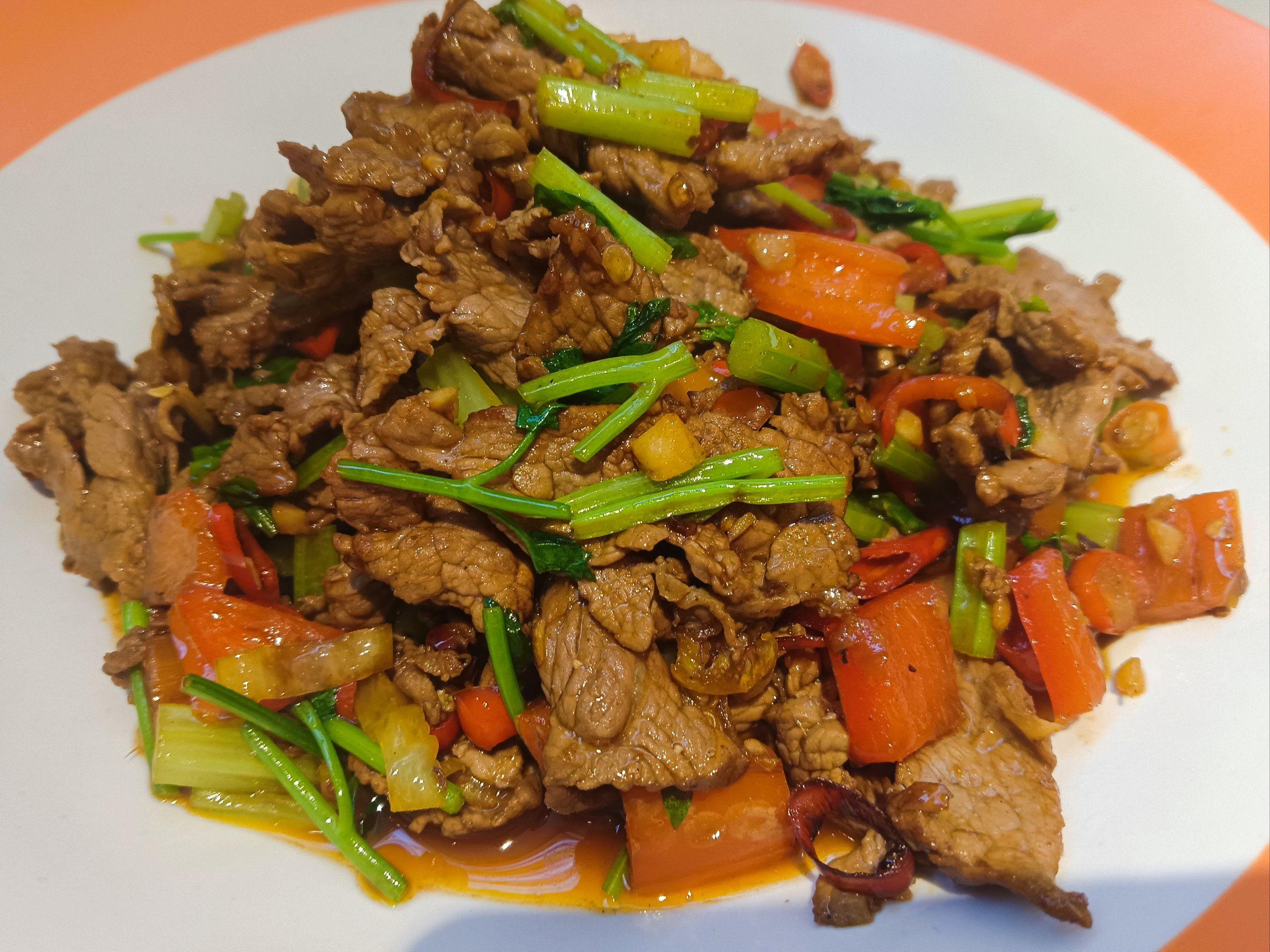 主要材料:羊上腦肉、青椒、洋蔥、蔥、鹽、料酒、生抽。