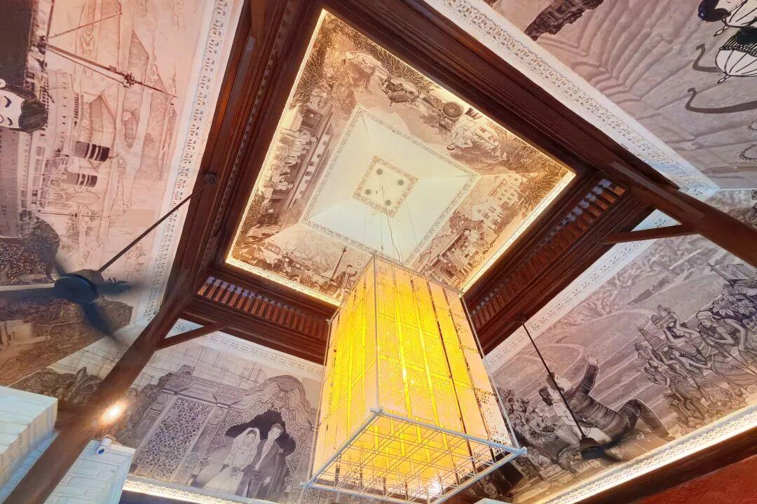點咖啡的時候,記得抬頭看,天花板上裝飾着描繪哈迪普拉納家族勵志故事的壁畫。這裏曾是亨德拉・哈迪普拉納先生鍾愛的居所。