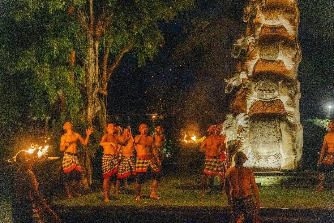 這是一種僅使用人聲、沒有任何樂器的舞蹈表演。幾十名男子圍成圓圈,用持續的“cak cak cak”聲構建節奏,即使聽不懂“語言”,也會被這種氣勢震撼住。