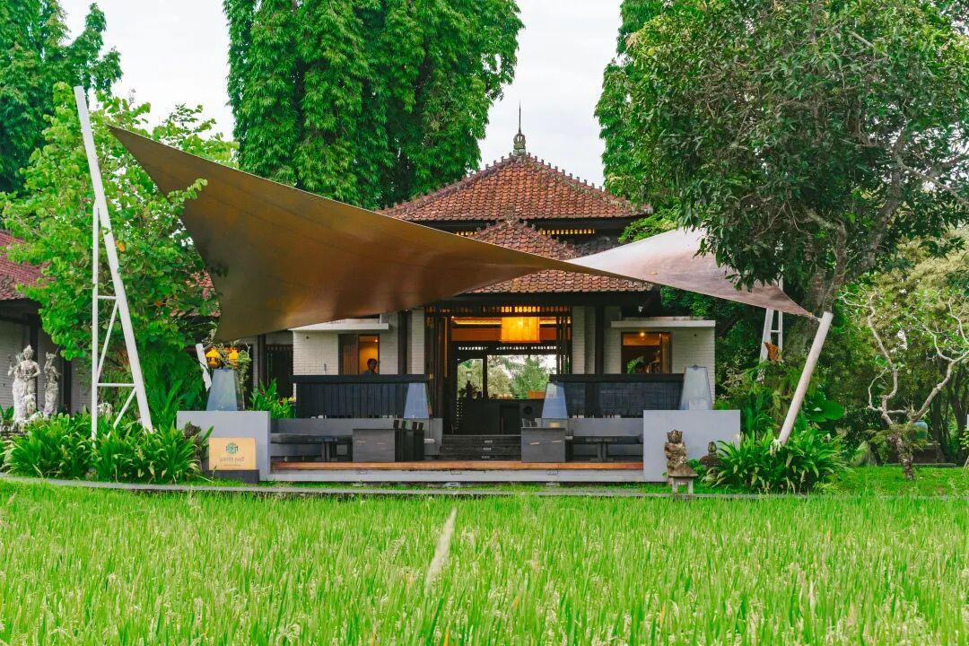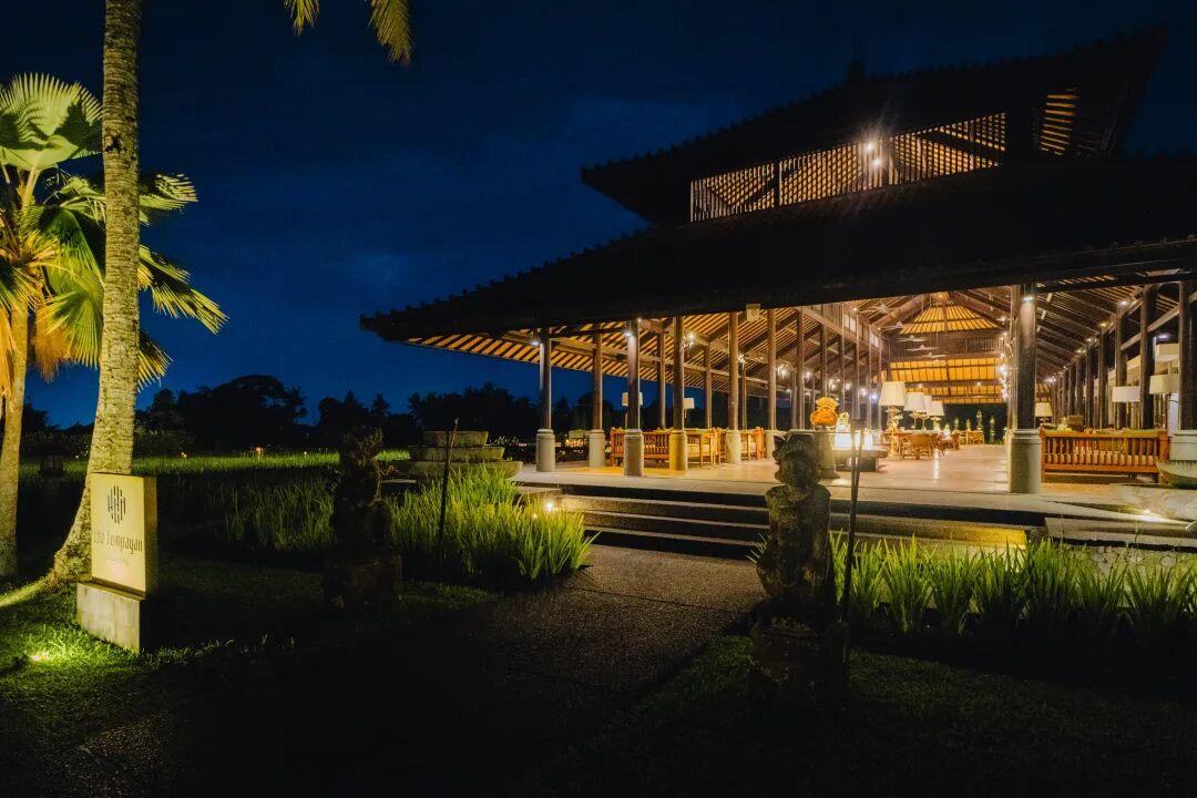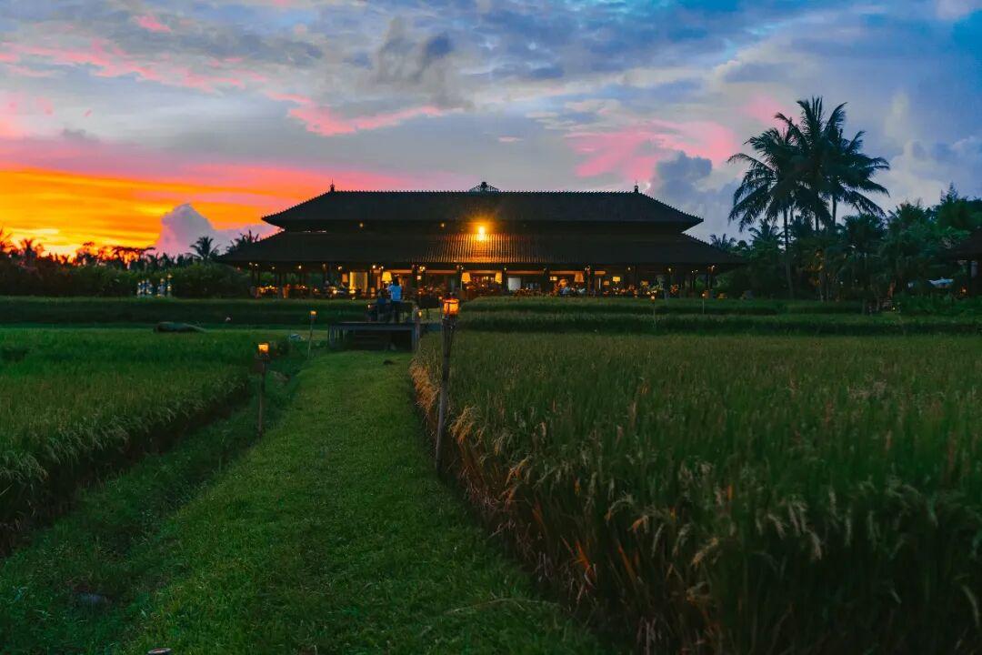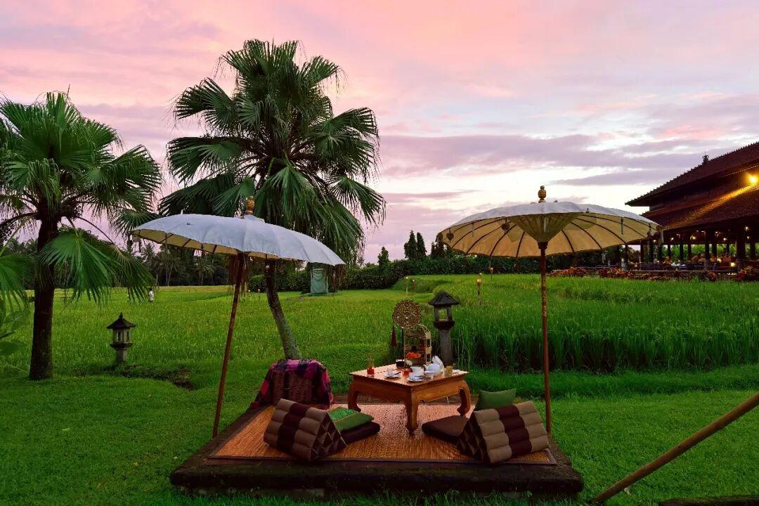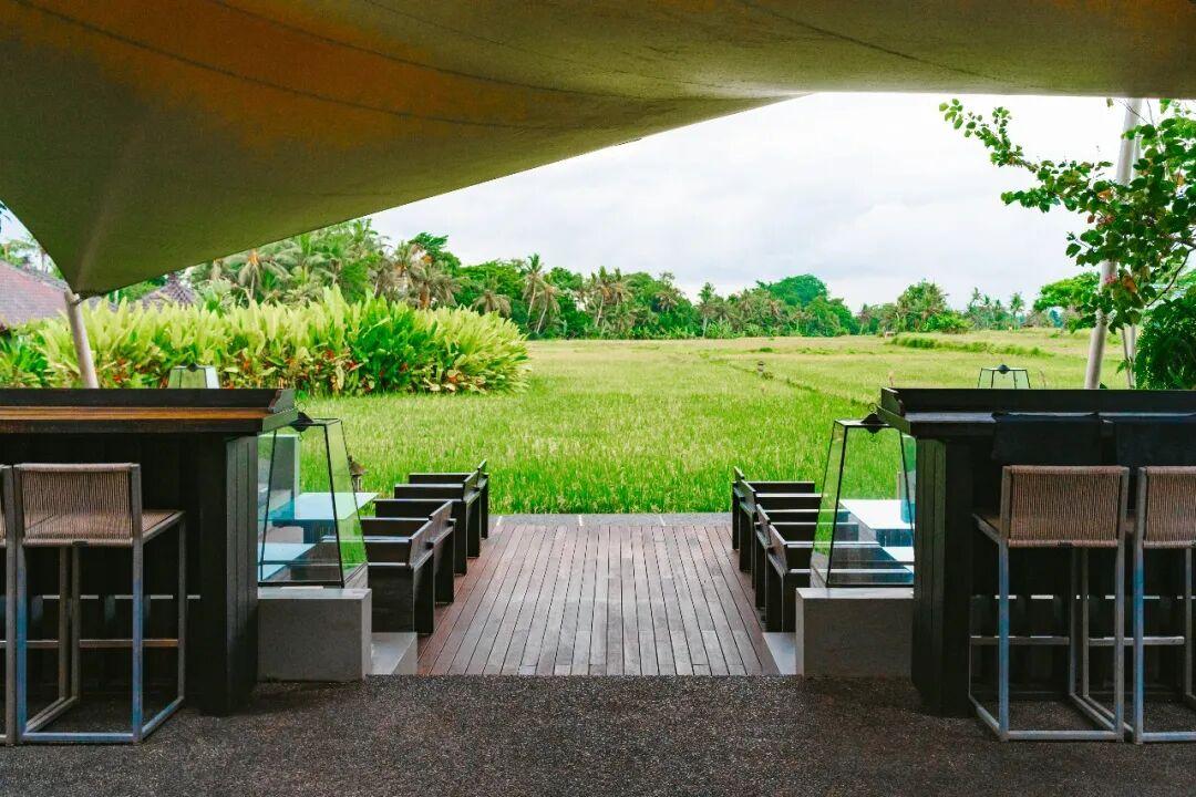 酒店的餐廳Tempayan,我稱它爲【稻田盛宴】。這座三面通風的涼亭,被開闊的稻田包圍,享用三餐的同時,可以感受田間的微風。