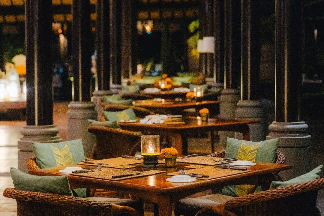 在夕陽餘暉的藍調中,以標誌性的大象之門爲背景,周圍是搖曳的燭光,照亮了歷史悠久的哈迪普拉納莊園,由行政總廚精心打造的五道式晚餐以及細緻入微的服務,任誰都會沉醉在這迷人的氛圍中。