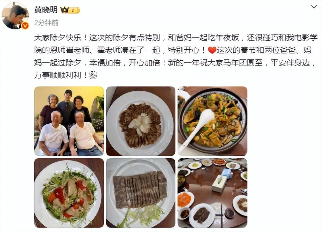 作爲實力派演員和歌手,黃曉明的代表作《中國合夥人》《烈火英雄》等深入人心,他的一舉一動也備受關注。今年春節,黃曉明選擇前往海南陪伴父母過年,曬出的年夜飯也主打 “簡約團圓風”。