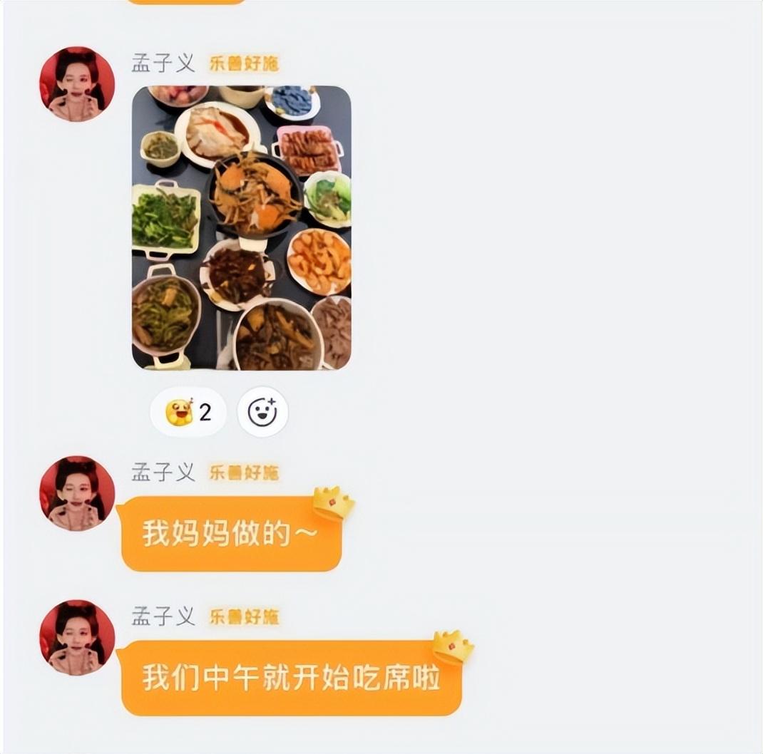 提到孟子義,大家對這位 95 後人氣女演員並不陌生,拍戲時的紮實的演技,綜藝裏的搞笑擔當,圈粉無數。今年春節,孟子義在粉絲羣裏分享了自家的年夜飯,還特意提到這是媽媽親手做的,而且全家從中午就開始享受這場美食盛宴了。