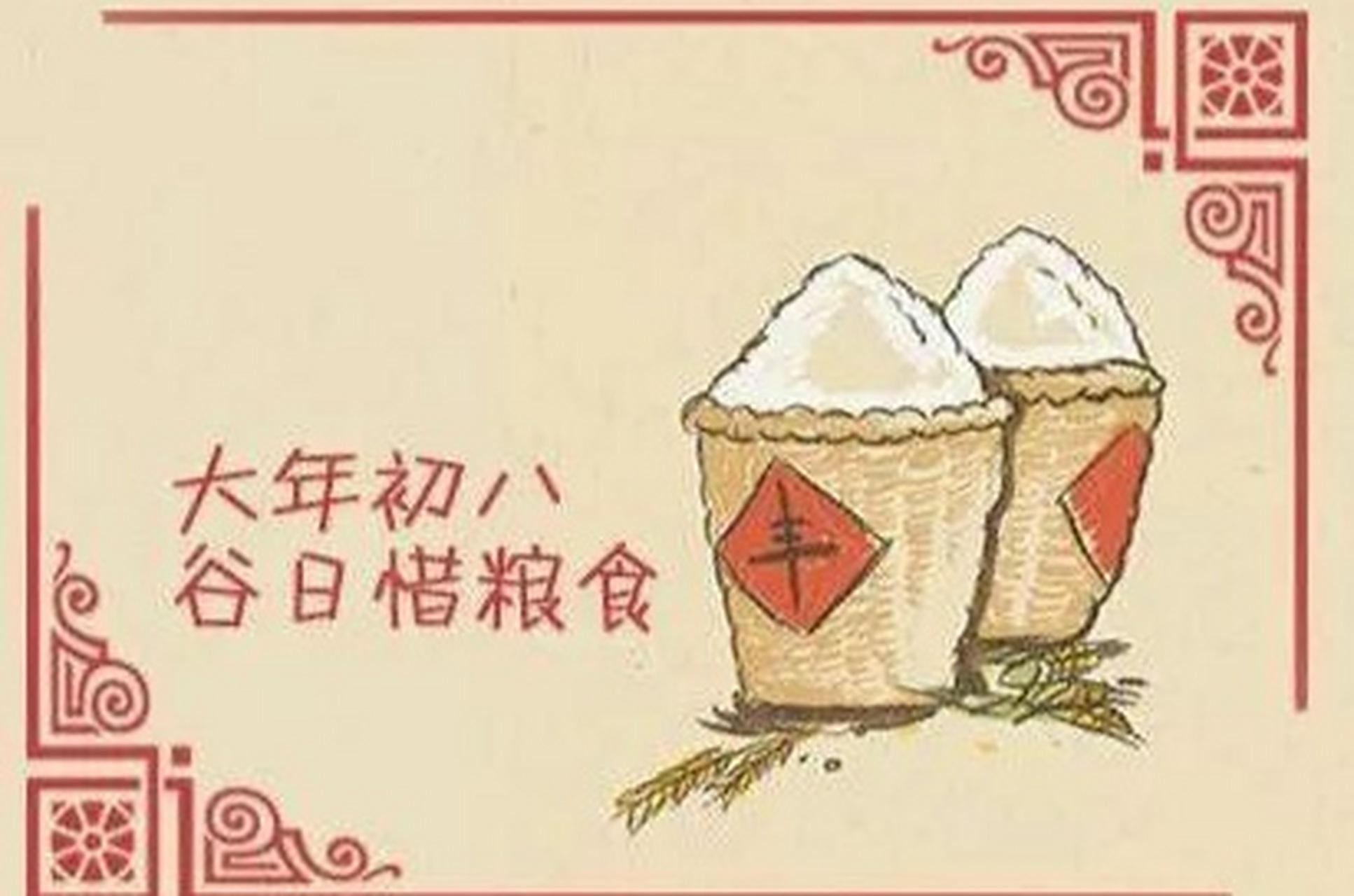 大年初八是穀日,人們希望未來的日子可以五穀豐登。所以這一天家裏的米缸,麪缸都別空着,倒滿穀物,象徵未來的日子不愁喫穿。
