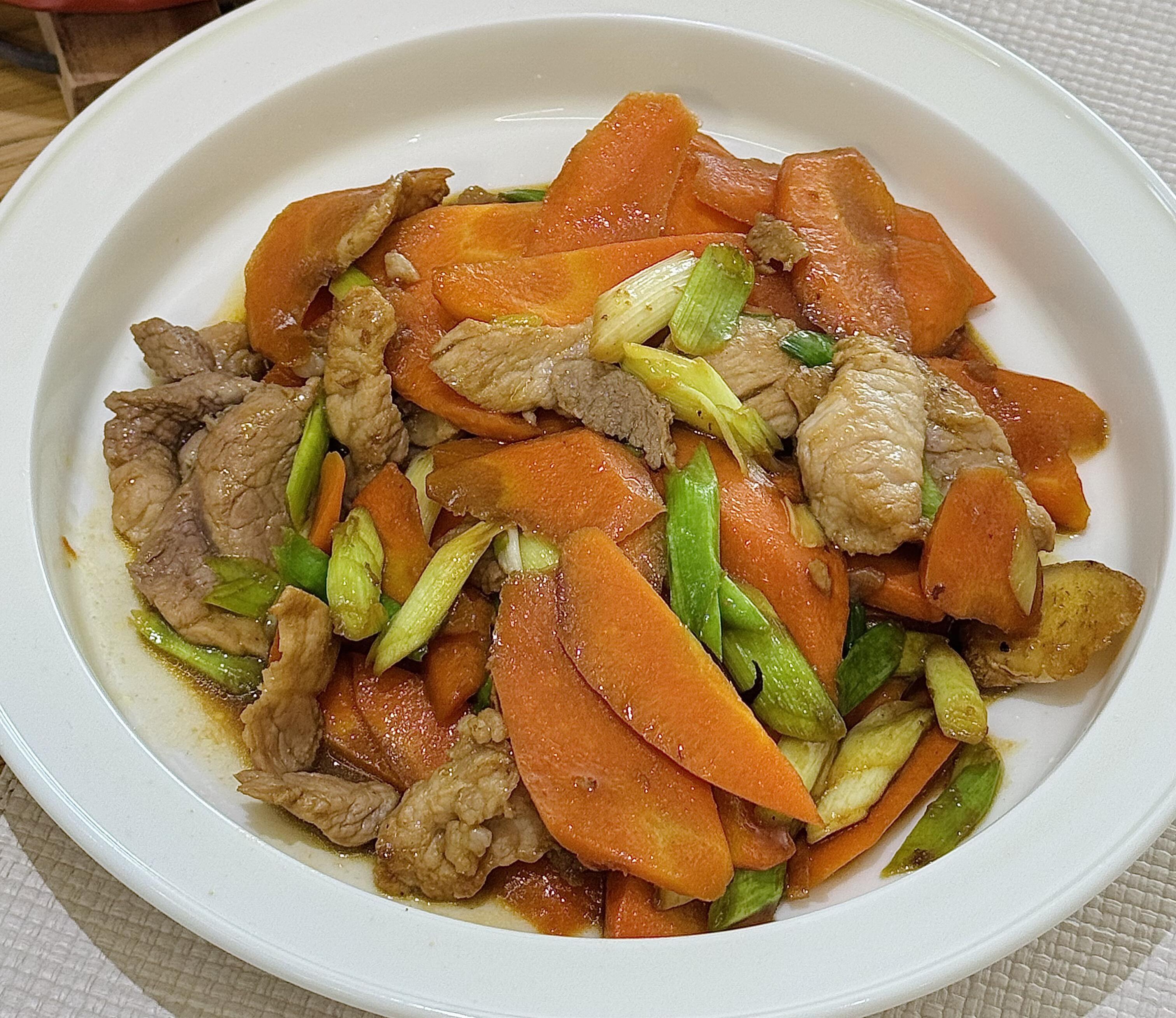 春天的胡蘿蔔搭配春天的青蒜,營養又美味。