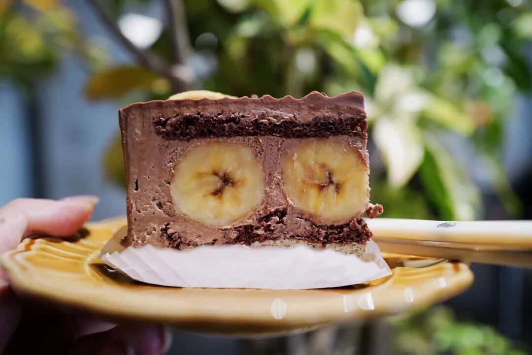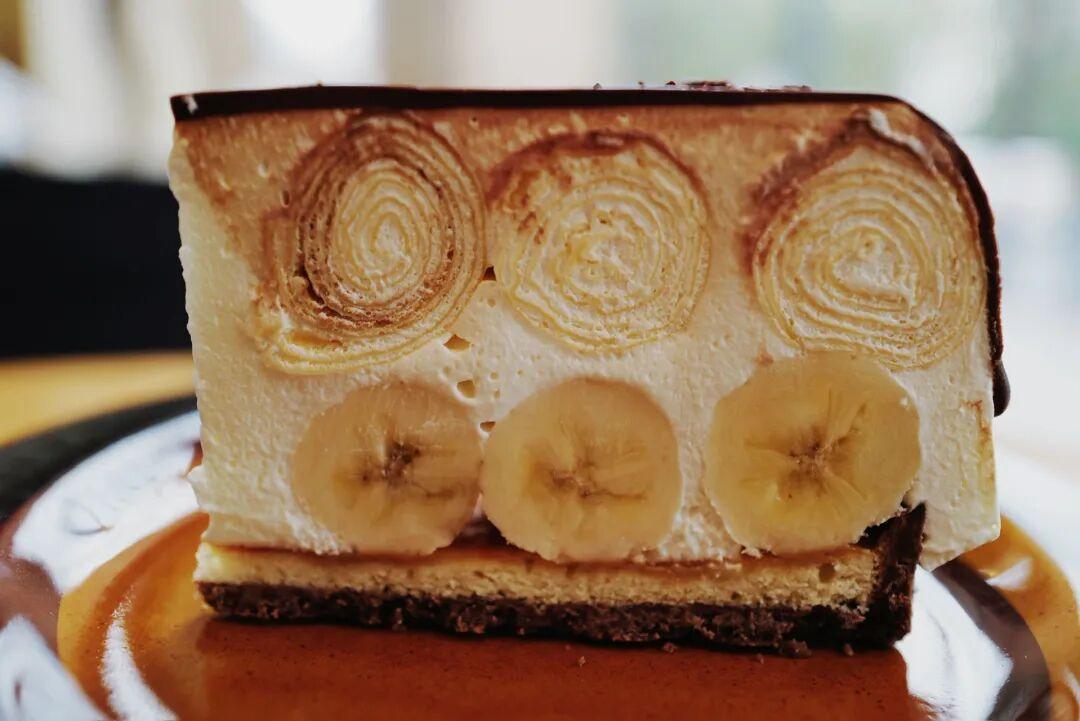 風很大的「海綿香蕉卷卷塔」,把可麗卷融合進蛋糕裏,黑巧微苦,奶油輕柔,軟軟香香,層次豐富幸福感爆棚。