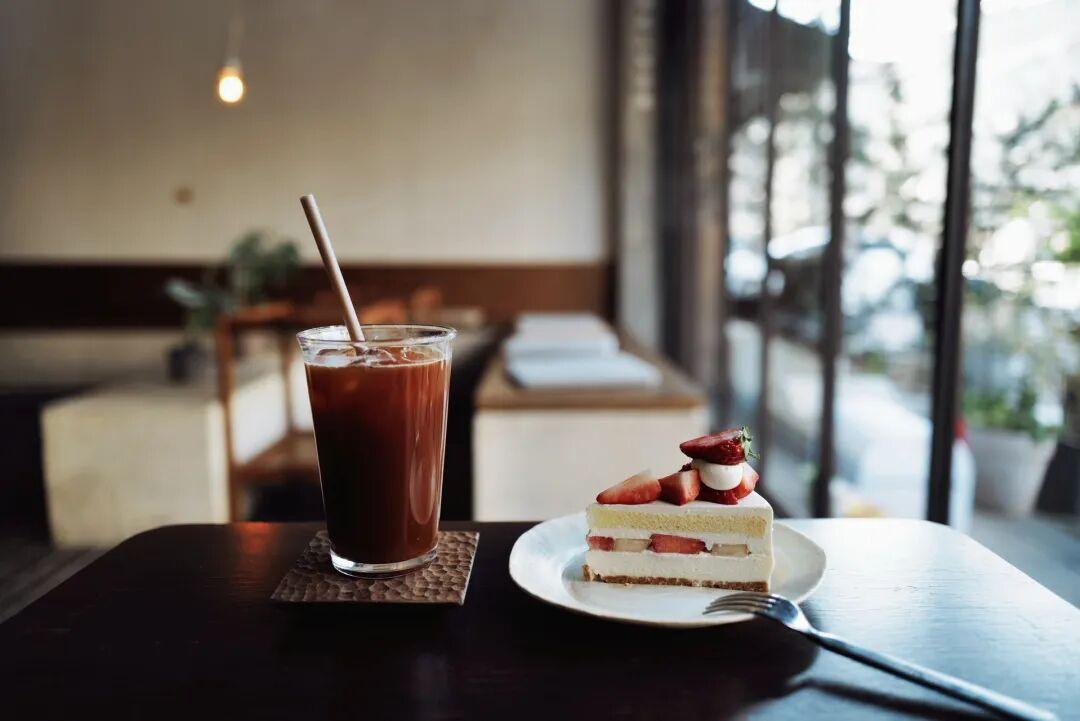 門店可以喝咖喫蛋糕切件,喫了一塊「洋梨草莓生起司奶油蛋糕」,和這個emoji長得一模一樣,屬於比較清爽的口味,搭配冰美式很合適。