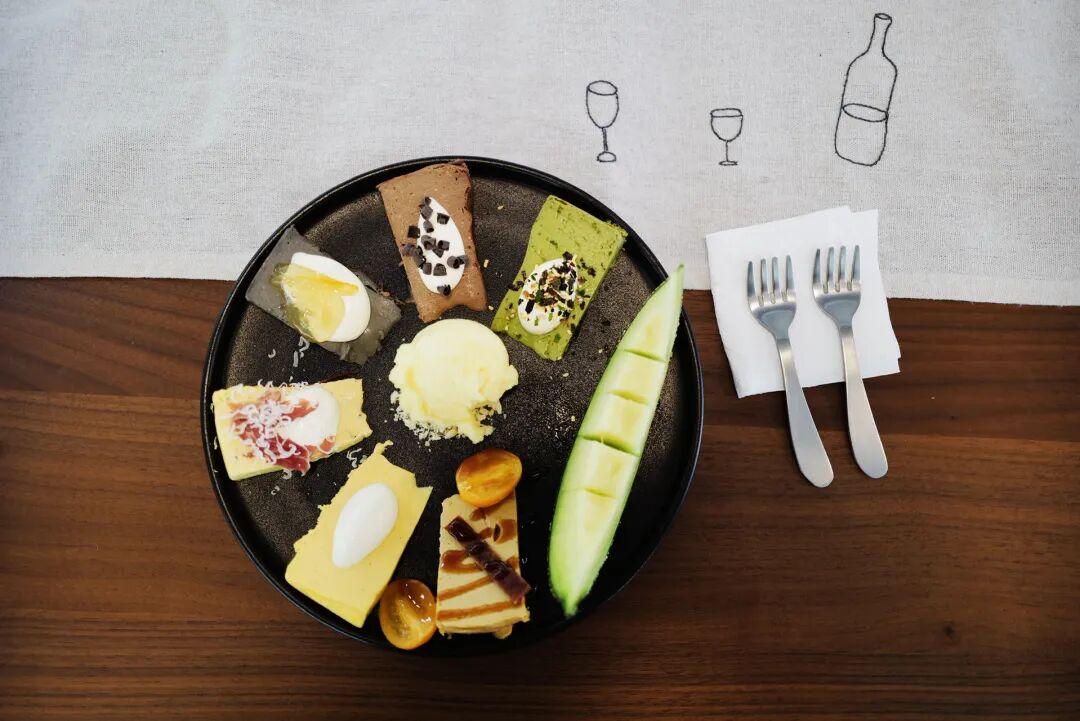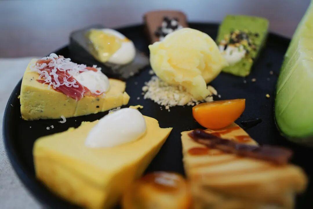 巴斯克omakase,其實就是各種口味的巴斯克組合拼盤,每日口味隨機,有什麼上什麼。我最喜歡黑松露火腿芝士巴斯克,火腿和巴斯克之間是一層順滑的奶油,仔細品還有酒味,風味層層遞進,味蕾真的會跳起舞來。