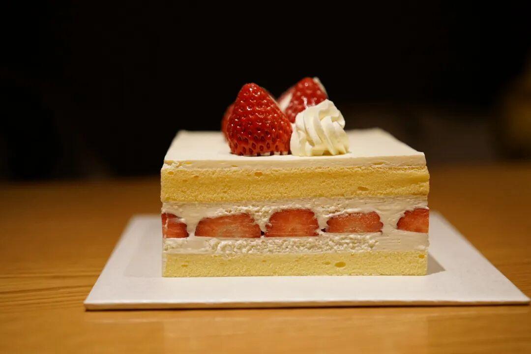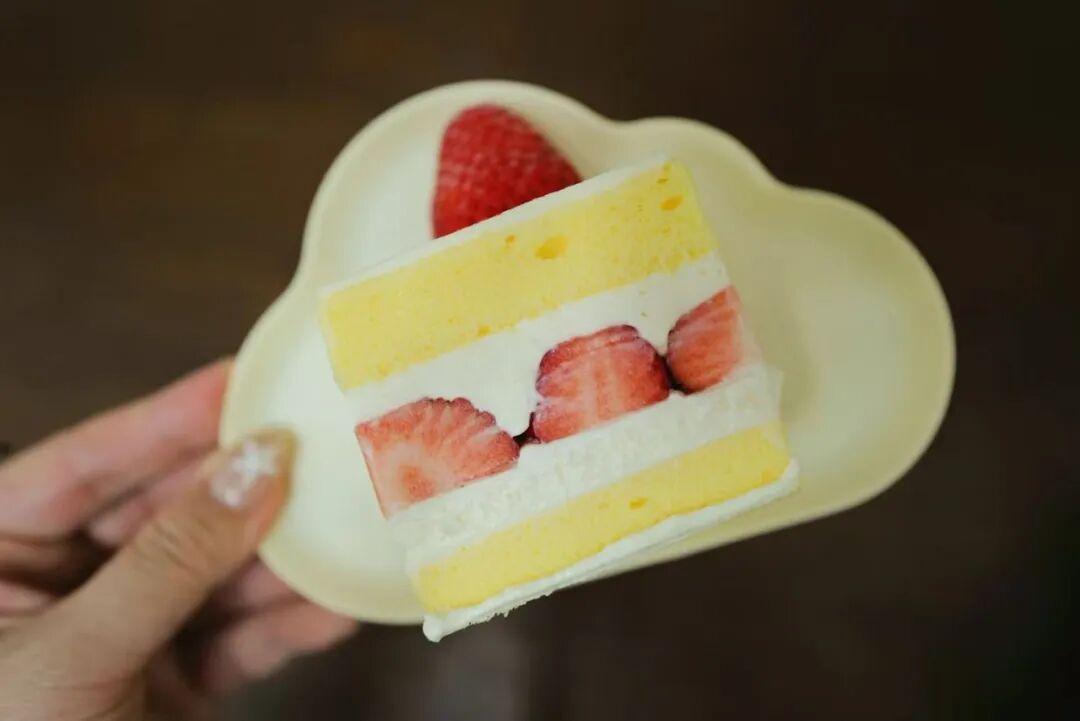 想了一年的「草莓香草卡仕達」,終於又喫到了。蛋糕是方方正正的造型,這賣相完全是強迫症福音來的。
