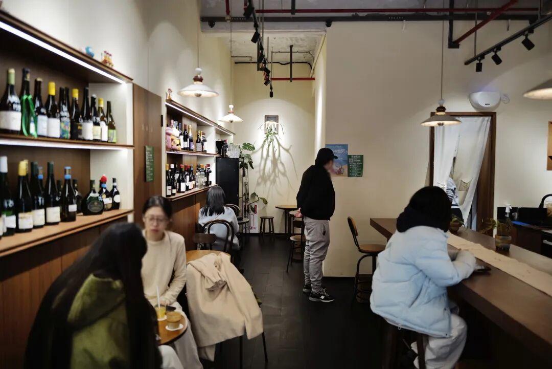 牆壁櫥窗上放着兩排葡萄酒,想一想朋友們,一個閒適的午後,起開一瓶凍至凝霜的白葡萄酒,搭配一整塊巴斯克蛋糕,慢條斯理地感受微醺,這畫面該有多美好。