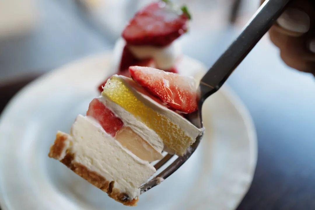 老闆說在冰箱放30分鐘會更好喫,冰過之後有點像冰激凌的口感。奶油和戚風蛋糕胚都很輕盈,蛋香奶香草莓香,香草的風味尤其突出,香甜綿軟細膩。