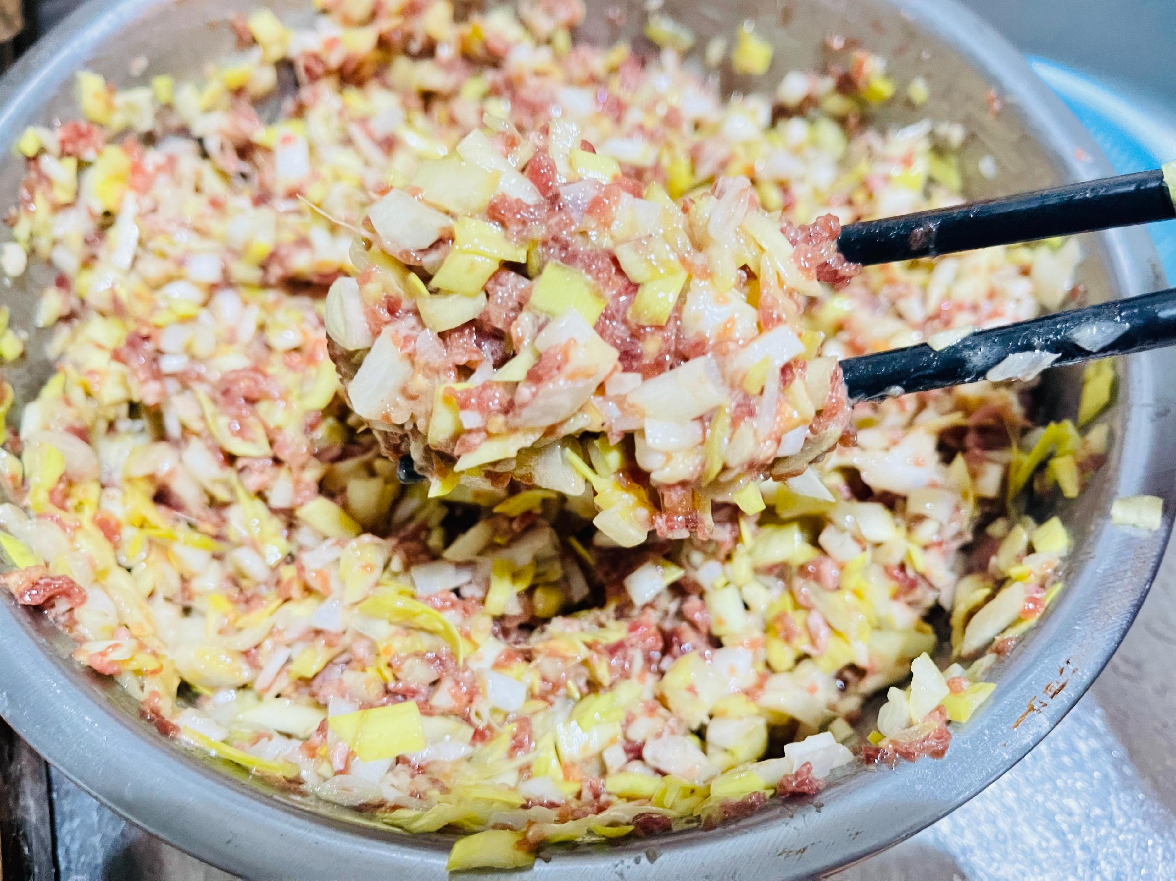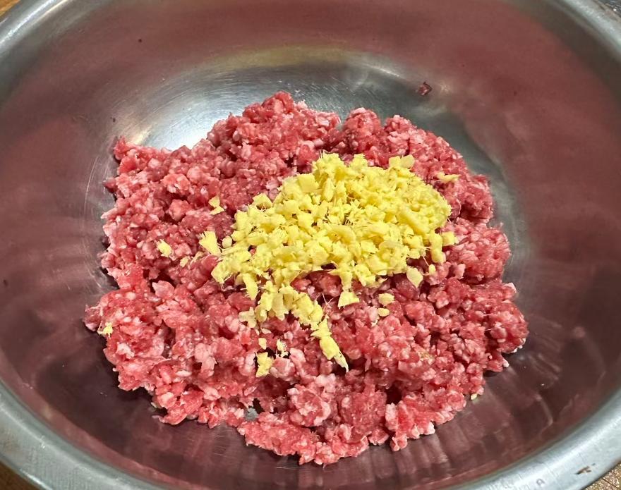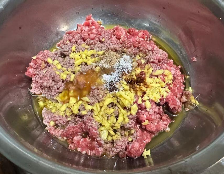1、首先準備牛肉餡,最好是牛肋條,有肥有瘦喫着比較香。
