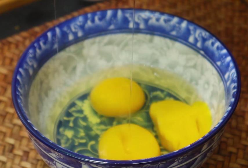 2、碗中打入4個雞蛋,充分地將雞蛋攪拌均勻,雞蛋不能少,多幾個喫着更香。