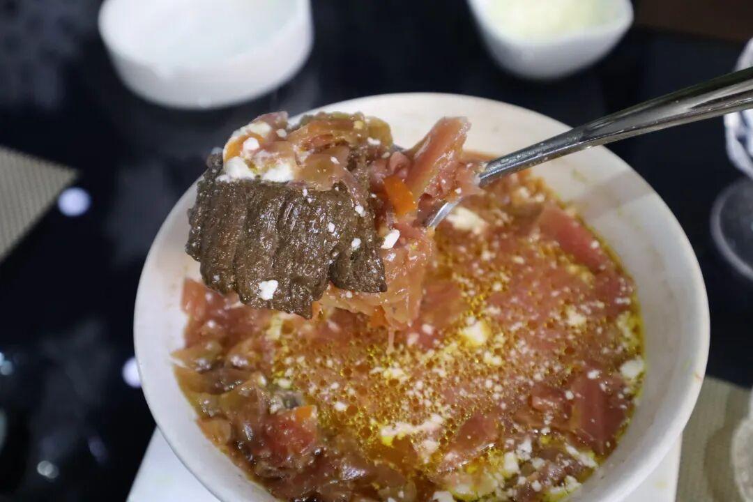 就拿這道酸奶面片來說的話,可能看起來沒有那麼誘人,但喫過幾口之後,的確是很不一樣的味蕾體驗。