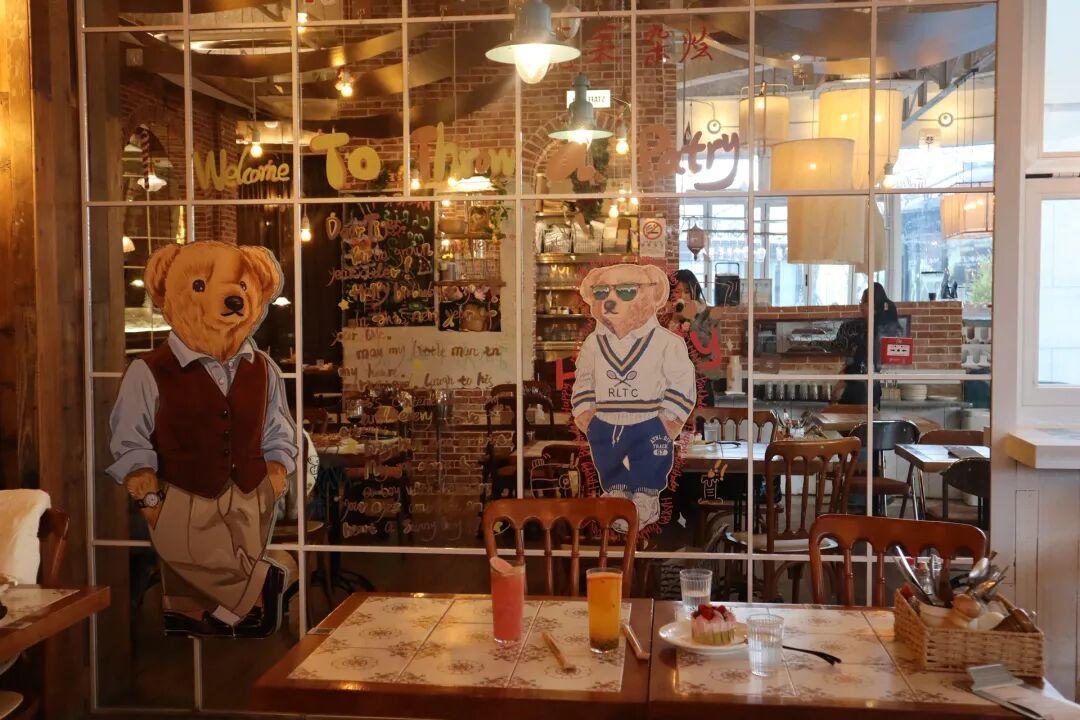 還有這個玻璃隔斷上貼着的手繪小熊,讓硬朗的工業風多了幾分軟乎乎的童趣。除了正餐,也可以選擇來喫下午茶。