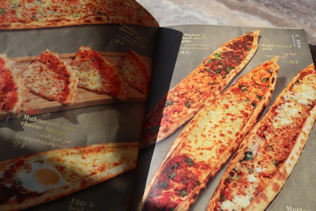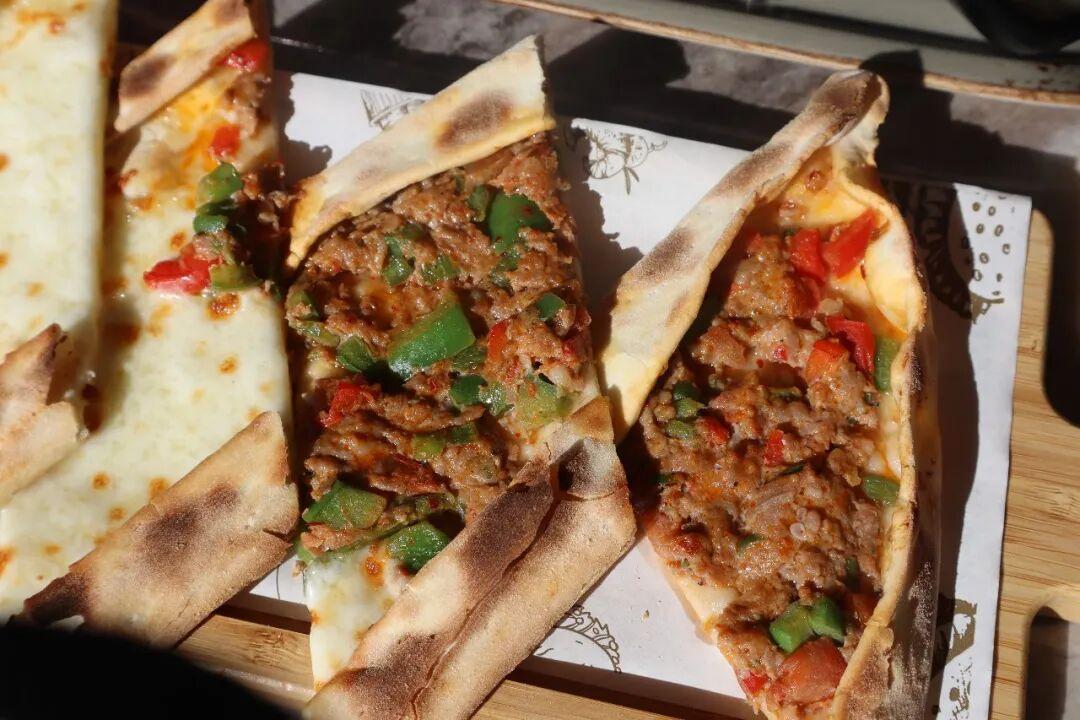 餐廳的pide(船型披薩)應該是最容易被認作“土耳其風味”的一道菜了。它的麪餅會被捏成兩頭尖的船型,中間的凹陷處用於盛放餡料。