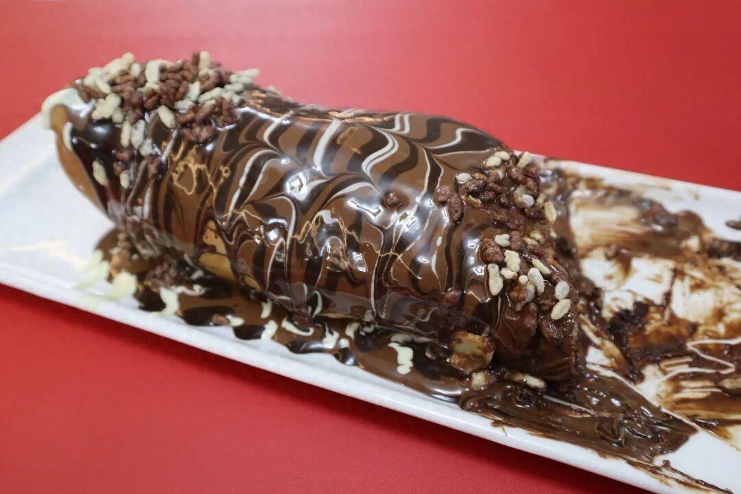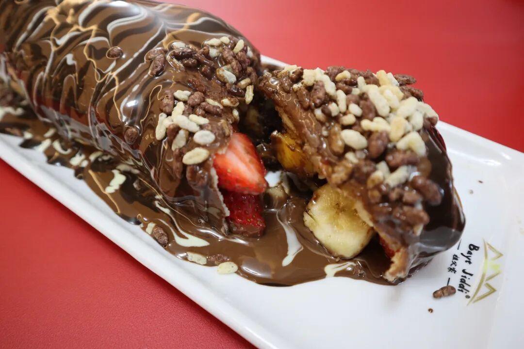 既然不遠萬里的來了,招牌Special Roll是必須要嚐嚐的啊。79元/份,份量超級足,巧克力醬爲外衣,各種水果爲內餡。