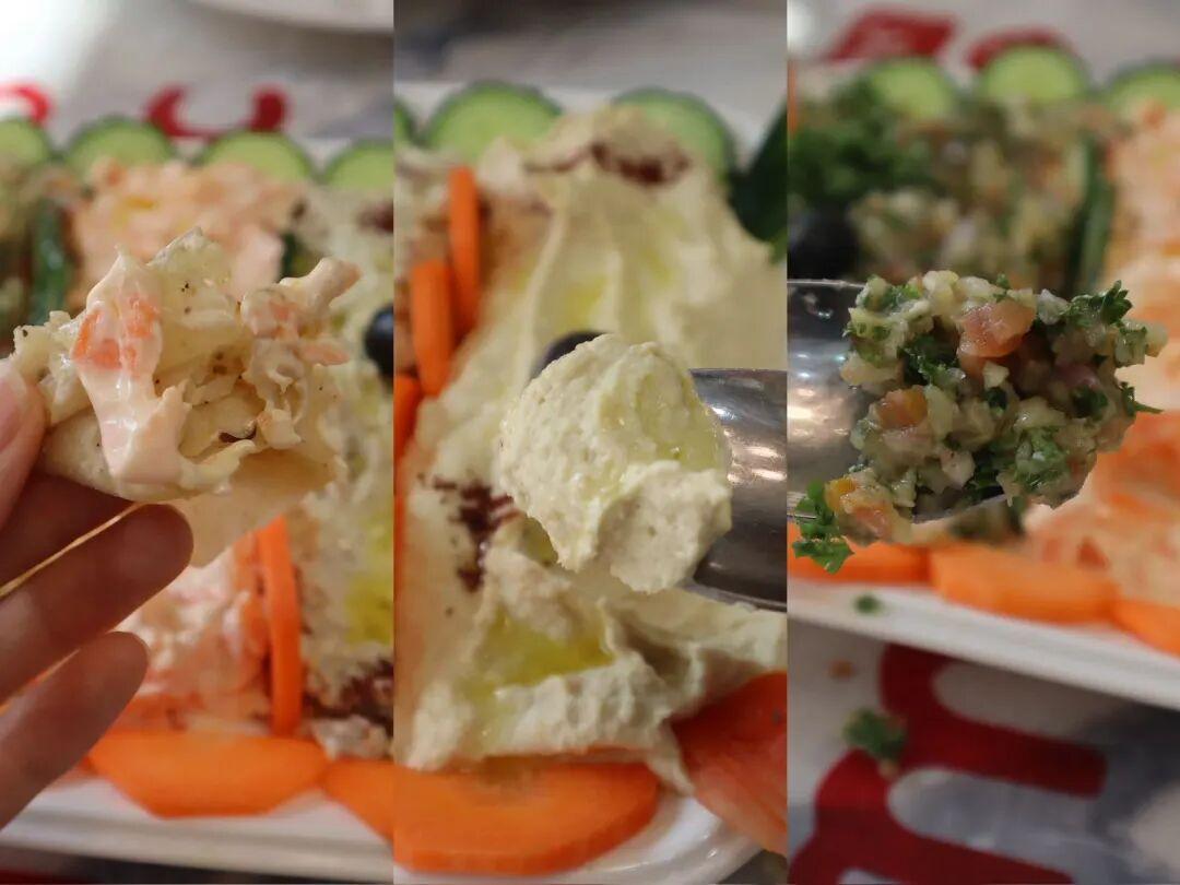 不過建議人多的時候點來嚐嚐,配上大餅來喫剛剛好,人少的話喫不完。鷹嘴豆醬是我最喜歡的,裏面還加入了芝麻醬、大蒜和檸檬汁,口感綿密,比花生醬更香,卻沒有那麼膩。
