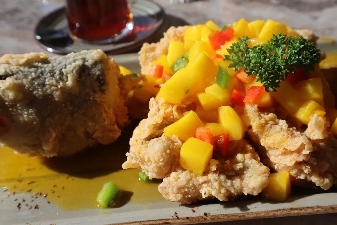 芒果的酸甜滋味與彩椒的清爽在口中交織,既解了炸物的油膩,又帶來了果香的活潑風味,口感豐富又有一種特殊的平衡。