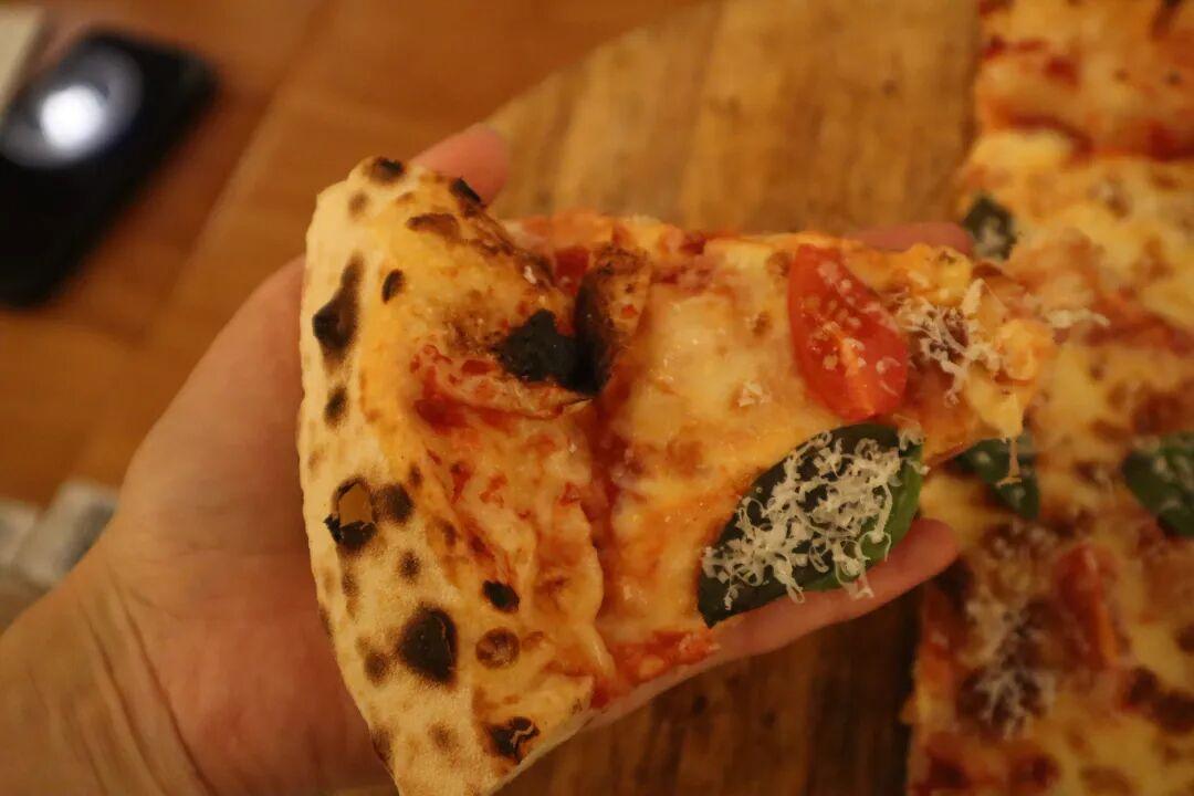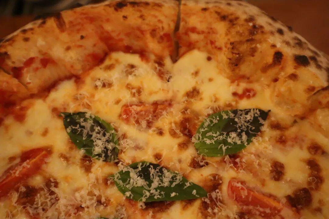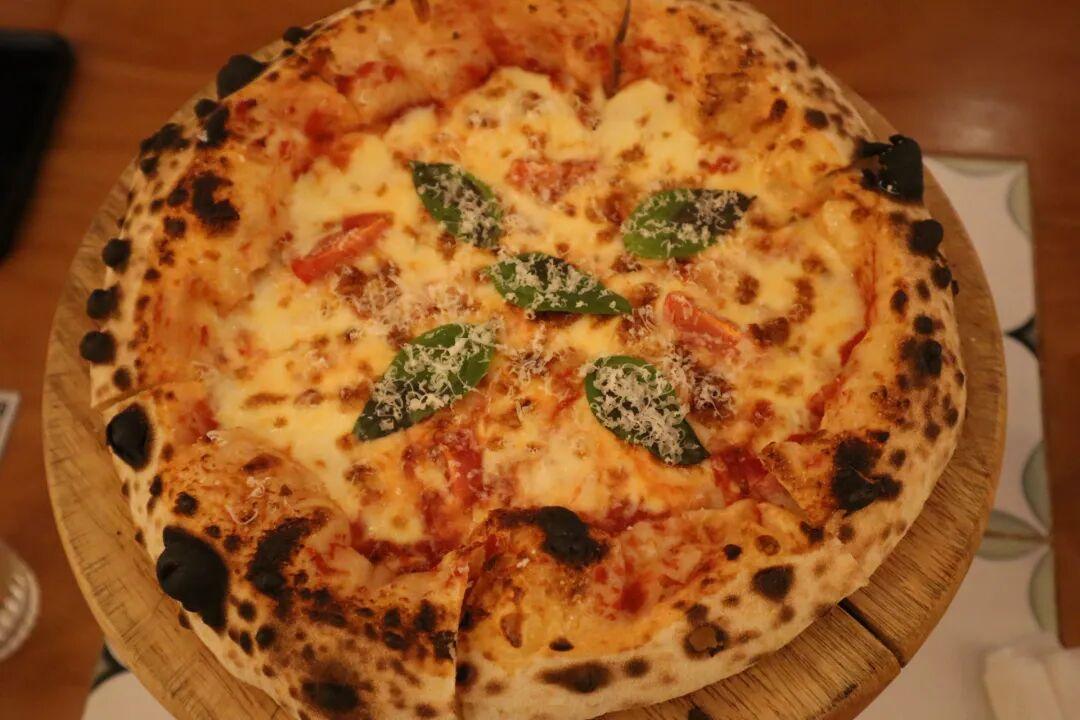 我點了瑪格麗特披薩,端上桌時芝士還在微微冒泡。
