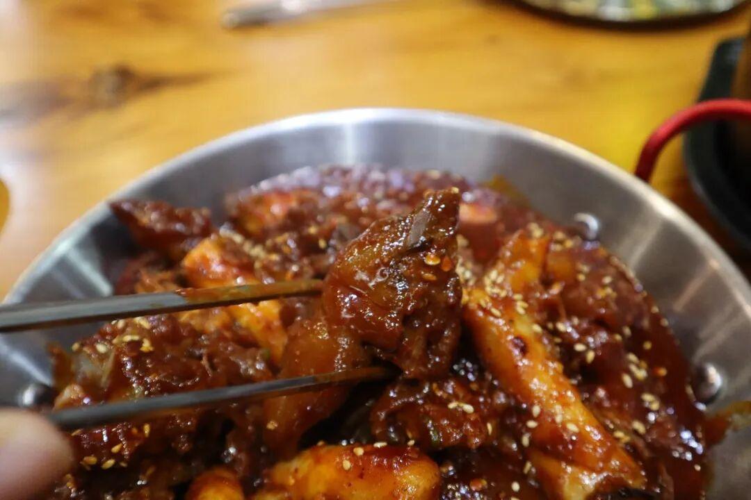 而且燉的也相當軟爛,加上韓式辣椒醬的發酵辛香、醬油的醇厚、蒜的微辣,還有一絲絲蜂蜜的甜意,喫起來實在太上頭了。