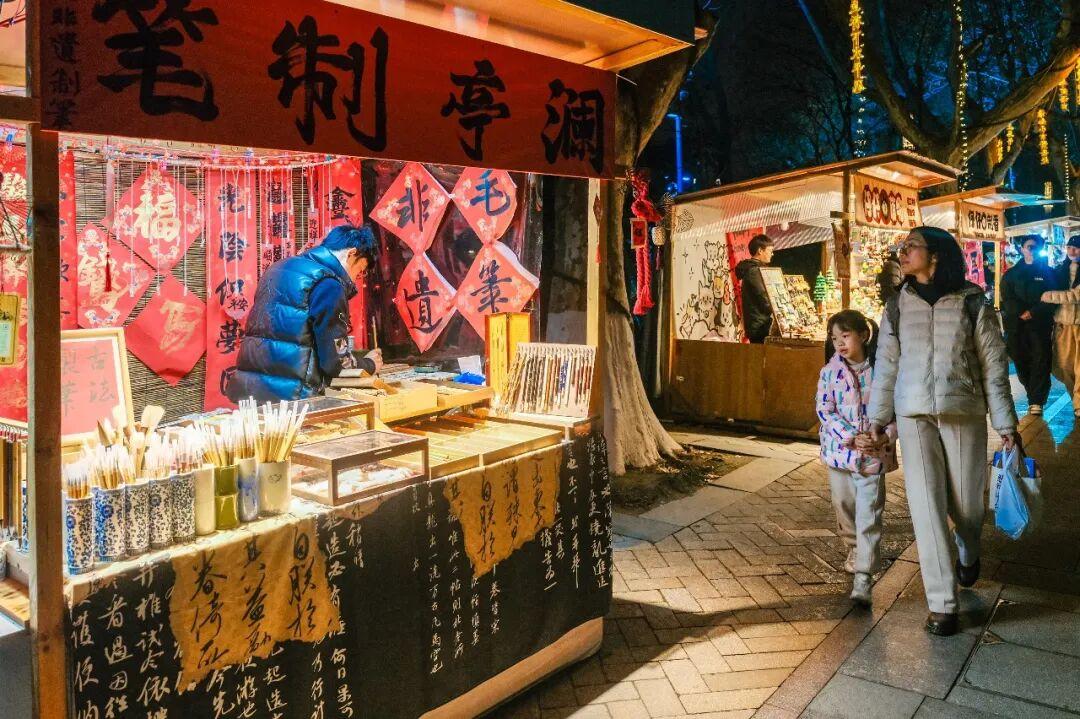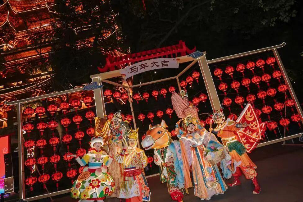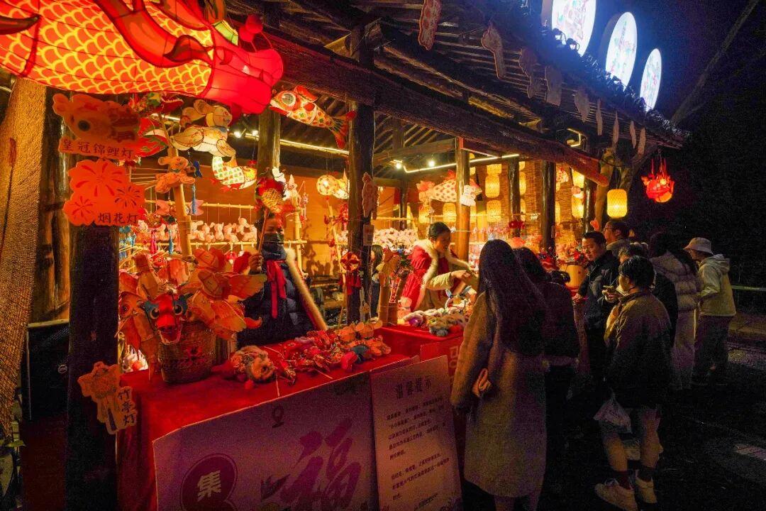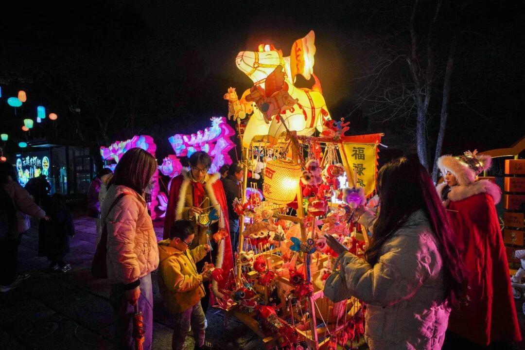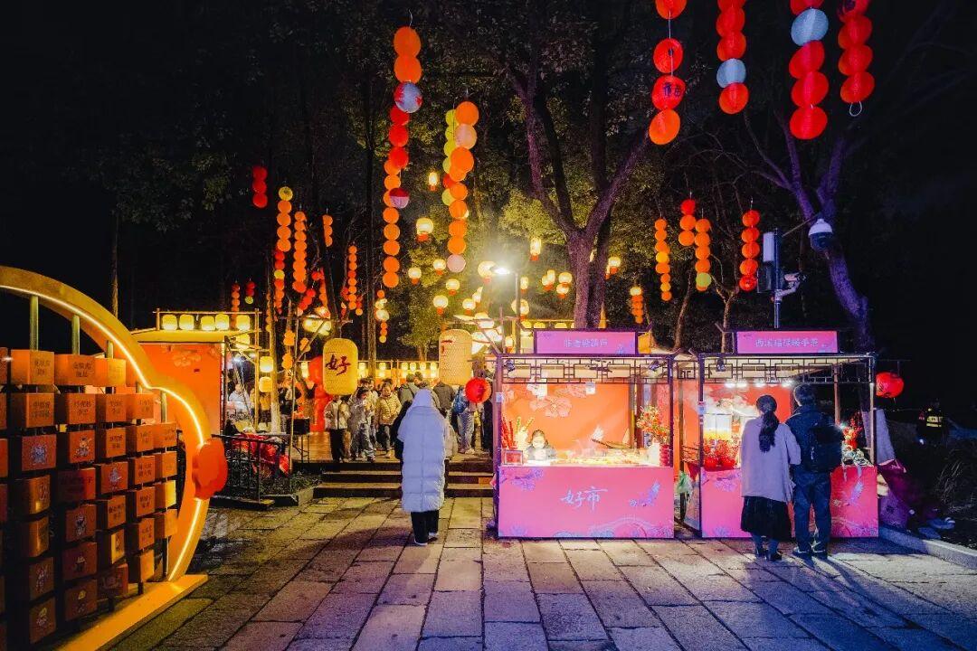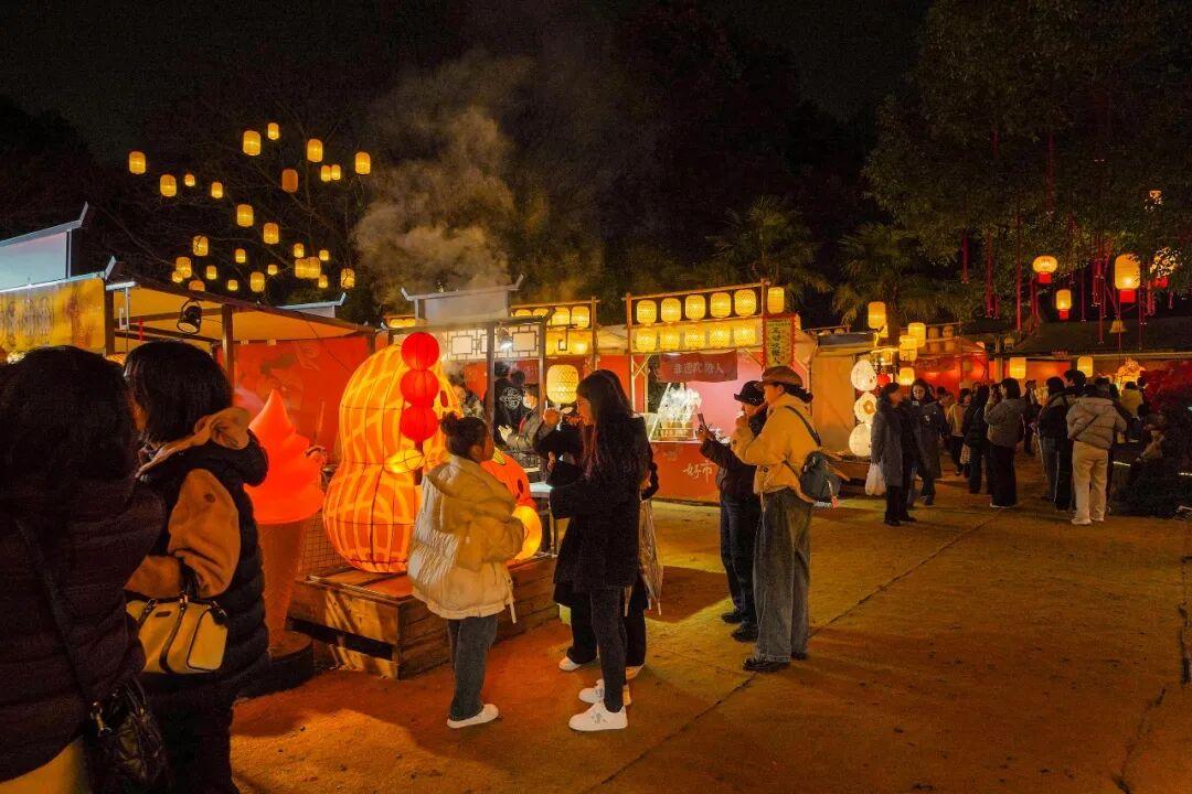 核心的看點包括大觀平臺的祥瑞麒麟燈、馬年主題燈組,山下的林下市集裏,還有非遺手作攤位和傳統小喫,逛累了可以隨時停下來歇腳。