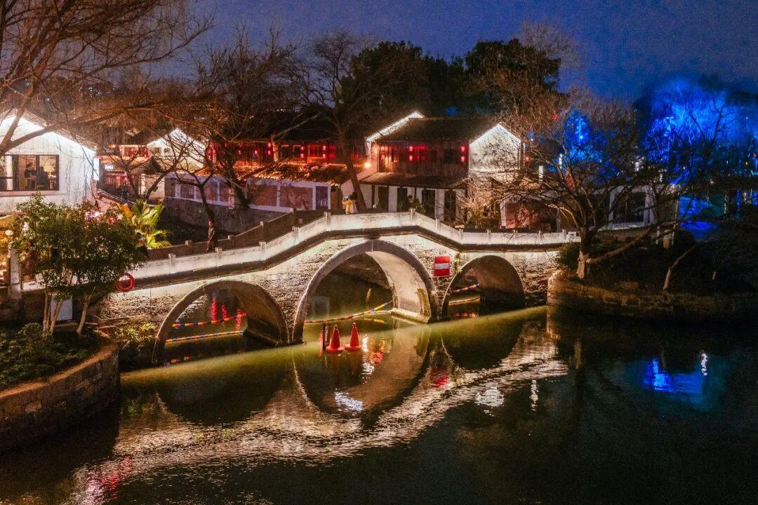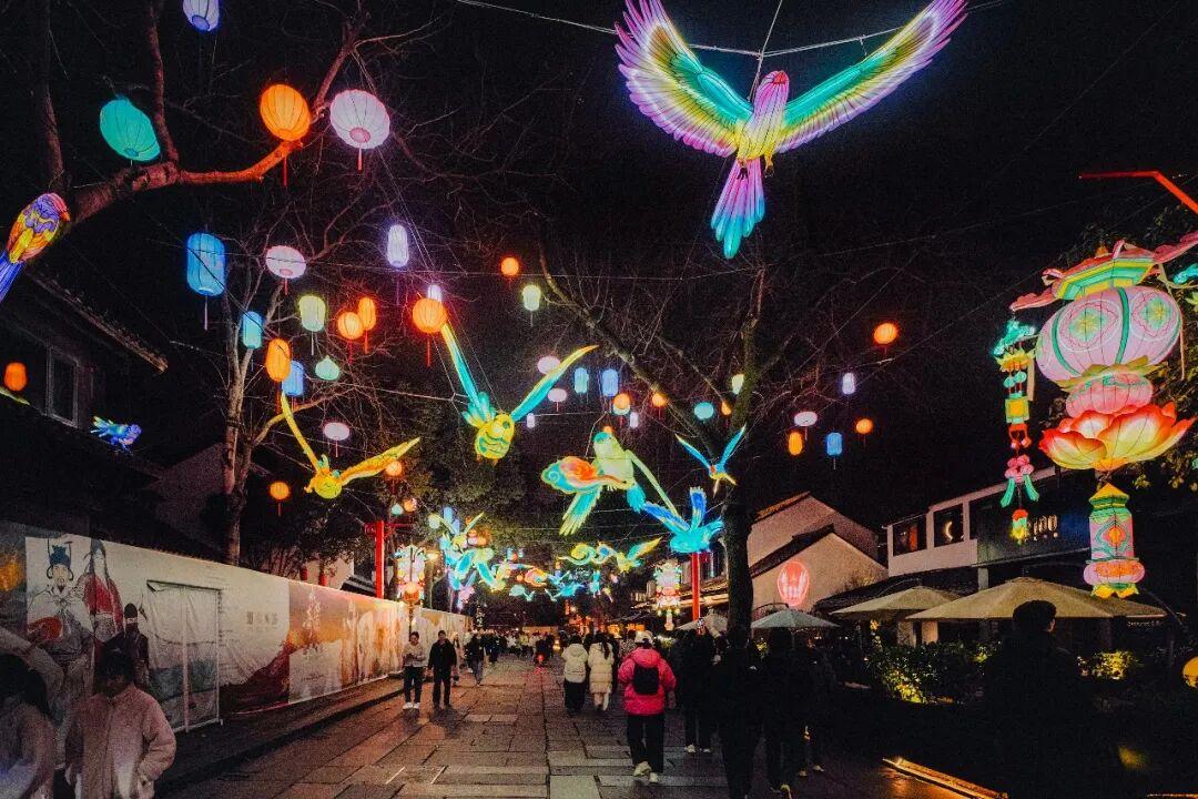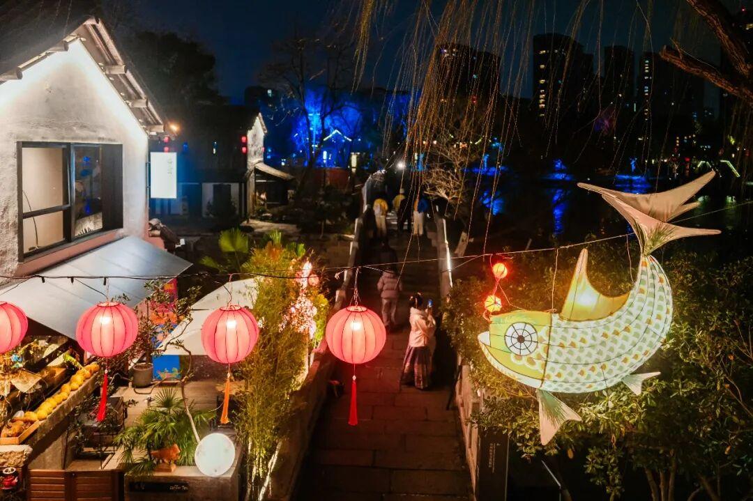 核心看點是主街的“年年有餘”主題魚燈,還有沿街鋪開的燈籠陣,沿着運河的親水平臺緩步往前走,能拍到燈影倒映在運河水面的畫面,氛圍感很足。
