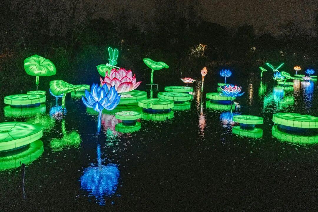 今年的燈會主題是“花鳥迎春,靈澤幻遊”,福堤、河渚街、蔣村慢生活街區這一片核心賞燈區,全程免費,不用買西溪的門票就能進,從北門或者文二西路的入口進都很方便。