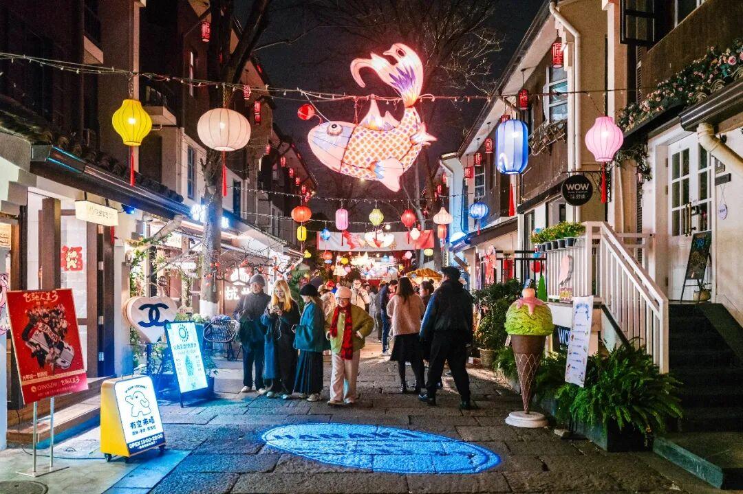 蔣村慢生活街區還有非遺鰲魚燈巡遊,鑼鼓一響,燈隊繞着街區走,熱熱鬧鬧的,過年的氣氛一下就上來了。