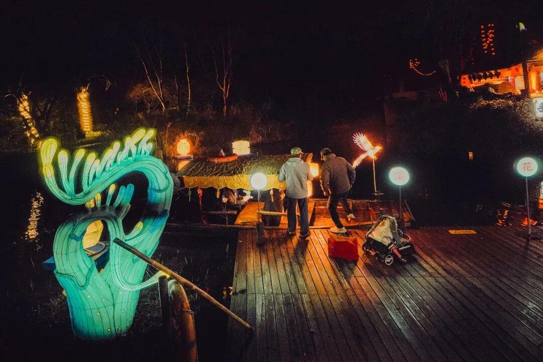 今年還有兩種逛法,除了走路,還能坐夜遊小火車,或者坐花燈搖櫓船順着水道逛,不過都需要提前預約收費的(不過貌似小火車和搖櫓船也就營業到今天)。