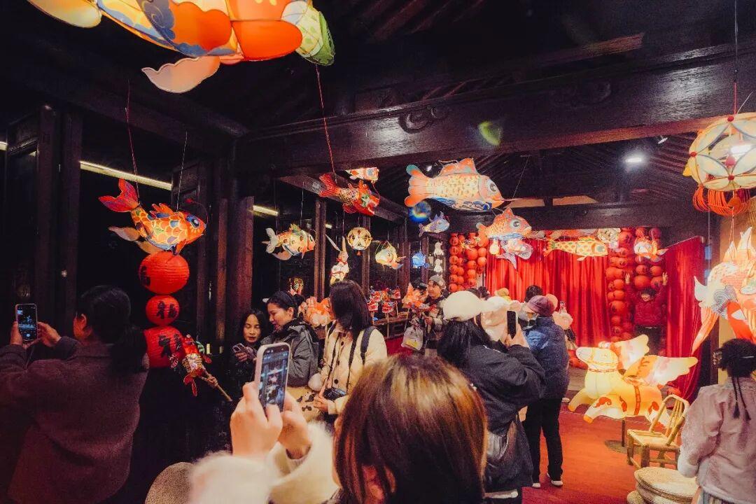 今天,這裏還有三場限定的瞻淇魚燈巡遊,分別在18:00、19:00和20:00,7米長的非遺魚燈跟着隊伍沿街行進,場面很是熱鬧。