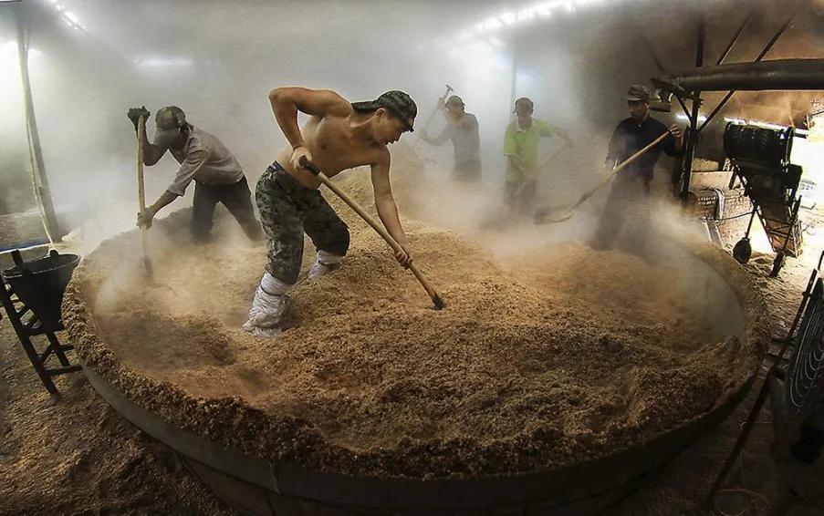 所有的純糧白酒的原料只有糧食和水,發酵工藝只有固態發酵,糧食和水通過蒸煮,發酵,陳化等一道道工藝,最終釀出來的,纔是糧食的精華——純糧酒。