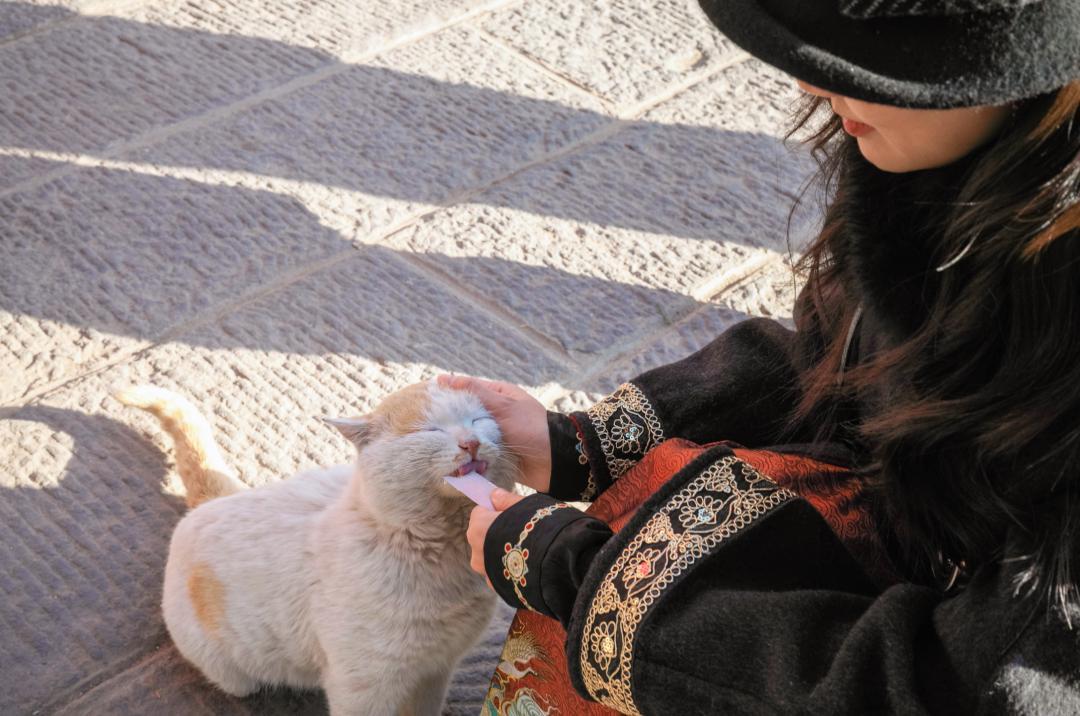 1月雲岡的遊客相對沒那麼多,我帶了貓條來喂喂冬天雲岡的小喵~