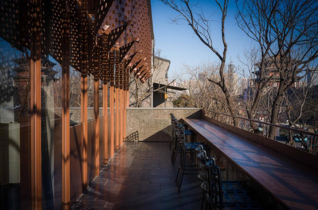 敕勒歌酒吧有室內也有戶外區域,你喝咖啡的背景可以是旌旗下的大同古城牆。