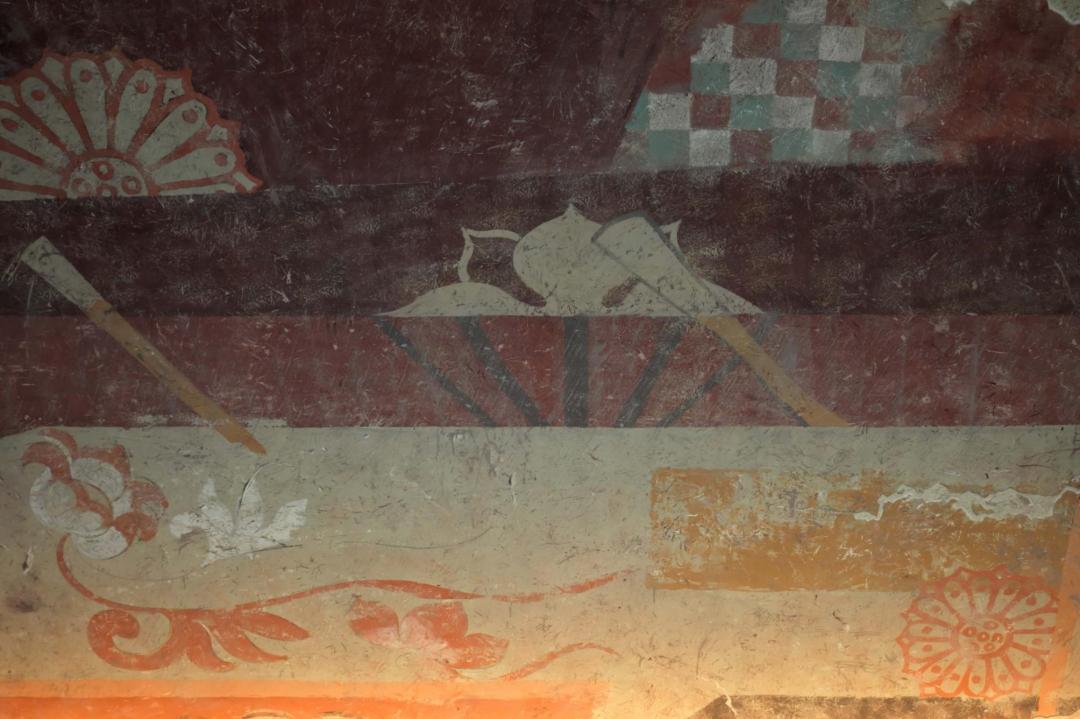 既下山邀來雲岡研究院主持壁畫修復的藝術家高平傳老師,在泳池上空繪製了巨幅壁畫,重現了北朝神韻丹青。