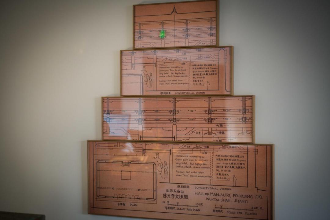 比如前臺這幅梁思成的佛光寺手繪稿,公區隨處可見的老物件和雲岡元素。