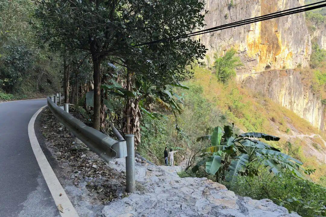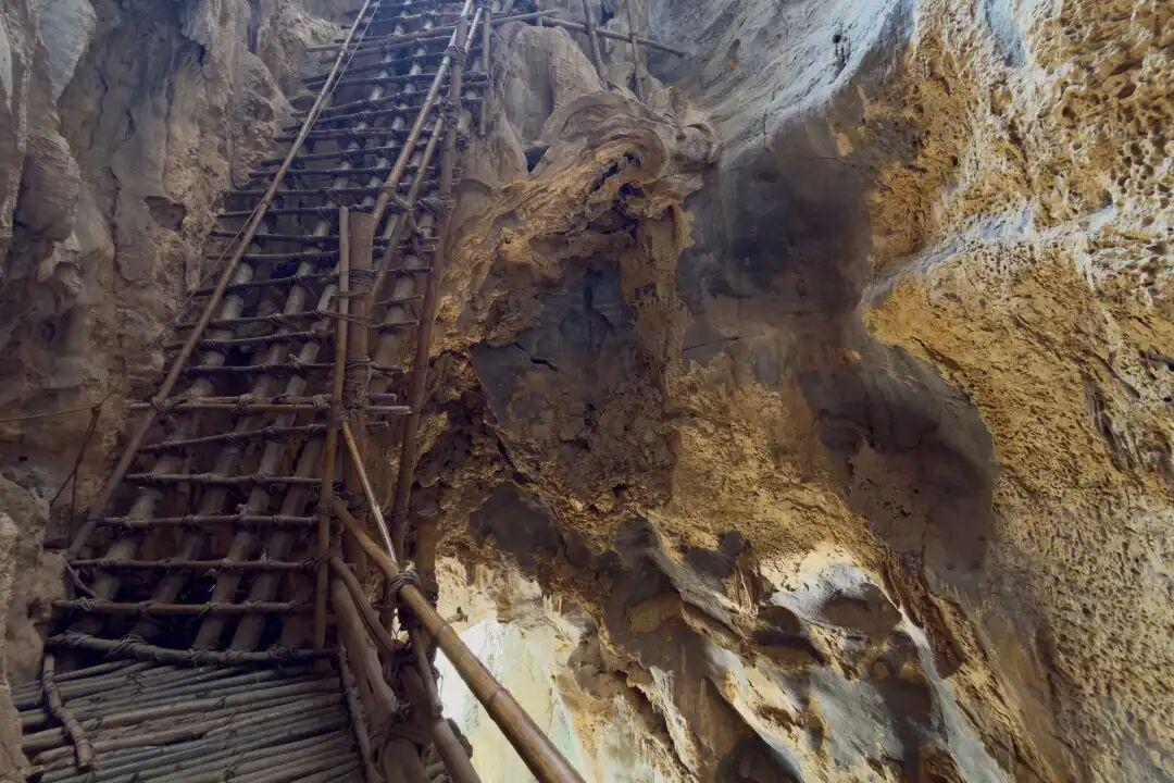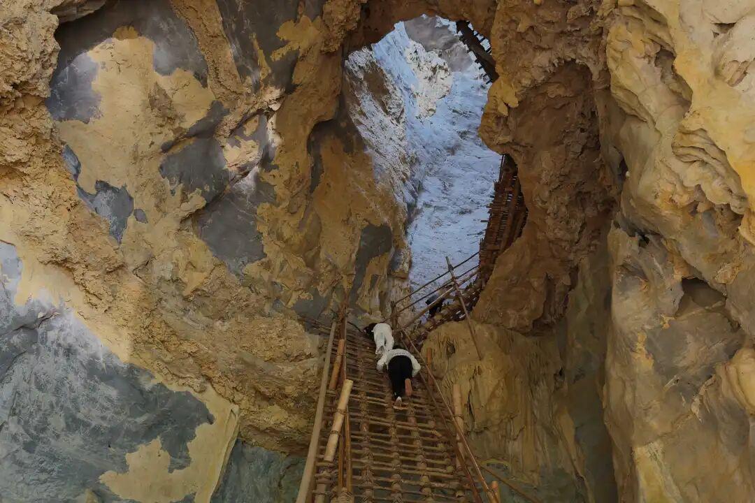 這個洞是天然形成的,就這麼垂直貫穿於懸崖峭壁上。2008年以前,這是浩坤村村民通往外界唯一的通道!