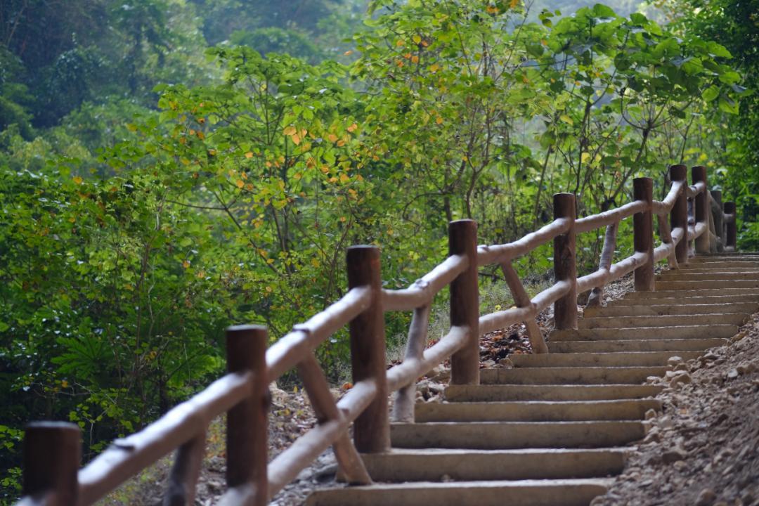 從棕櫚洞下來後,不要急着回停車場。豬籠洞的正確入口就在馬路對面。看下圖的臺階,沿着往下走就對了。