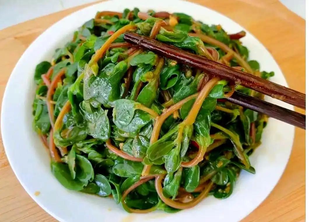 馬齒莧生命力極強,耐旱又耐澇,在我國南北各地的菜園、荒地、路邊、田間都能生長,初春時節長出的嫩莖葉最是鮮美。它的葉片肥厚多汁,顏色翠綠,口感清爽,略帶一絲微酸,既能涼拌,也能清炒,是初春解膩開胃的好食材。