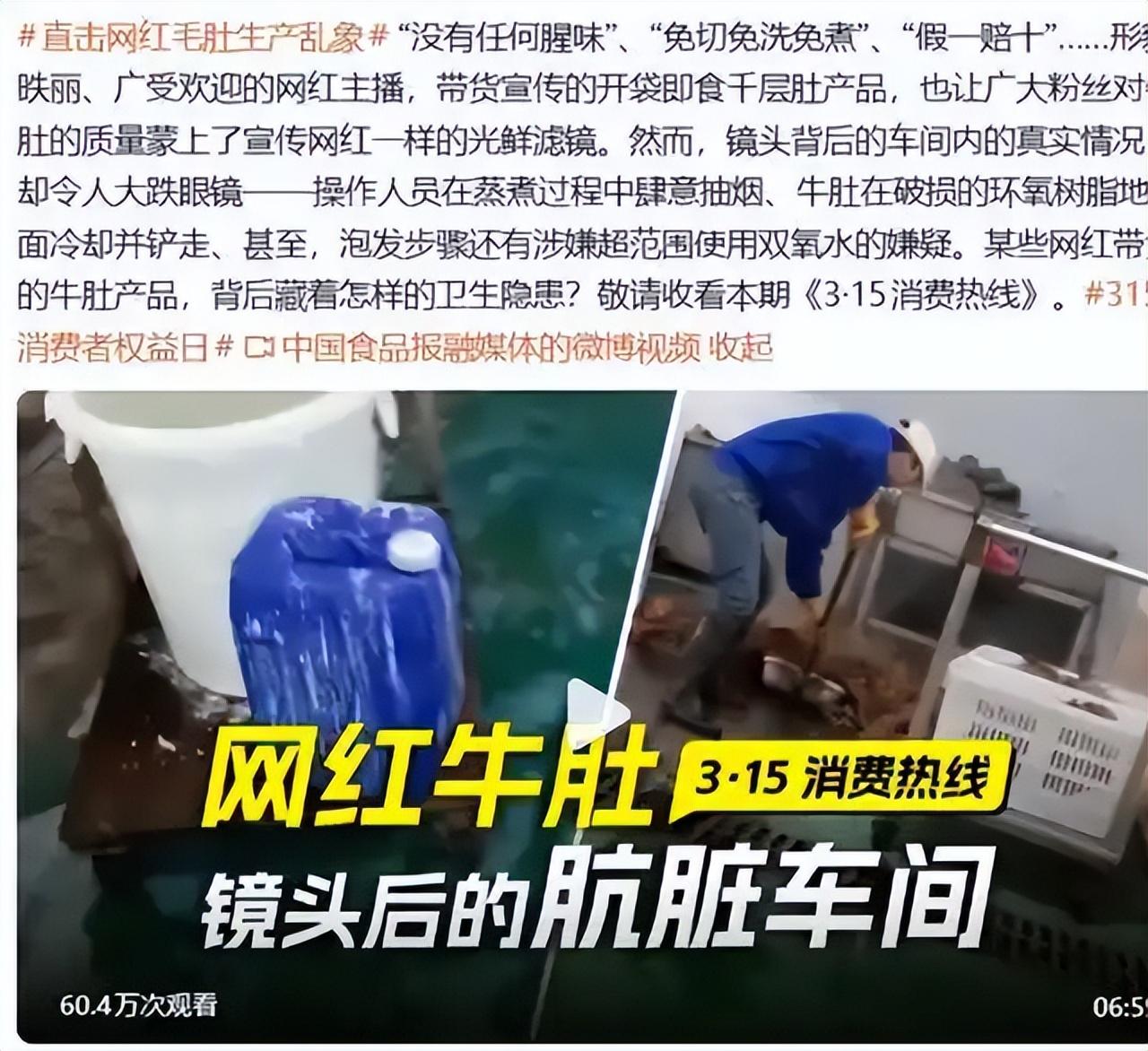 鹿哈在直播間曾承諾"假一賠三""乾淨衛生,孕婦都能喫",與實際生產現狀形成強烈反差。這款毛肚銷量近3000萬單,若按"假一賠三"計算,賠償金額高達26.9億元;若適用《食品安全法》"假一賠十",最高可達89.7億元。