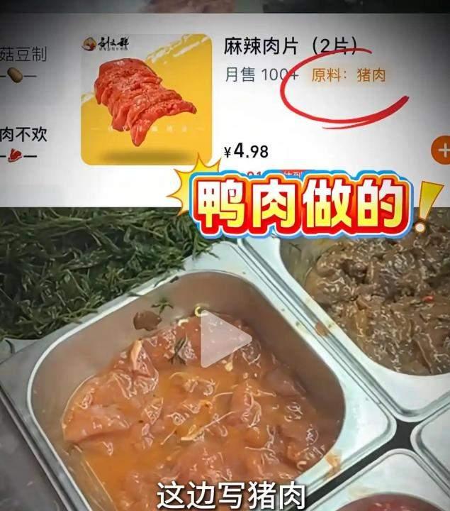 更亂的是食材標註:同一款“蠔油肉片”,在A平臺標雞肉,B平臺標鴨肉;線下說是豬肉,後廚其實是鴨肉。所謂的“全國連鎖”,其實除了底料,食材全是加盟商自己去菜市場淘換的便宜貨。