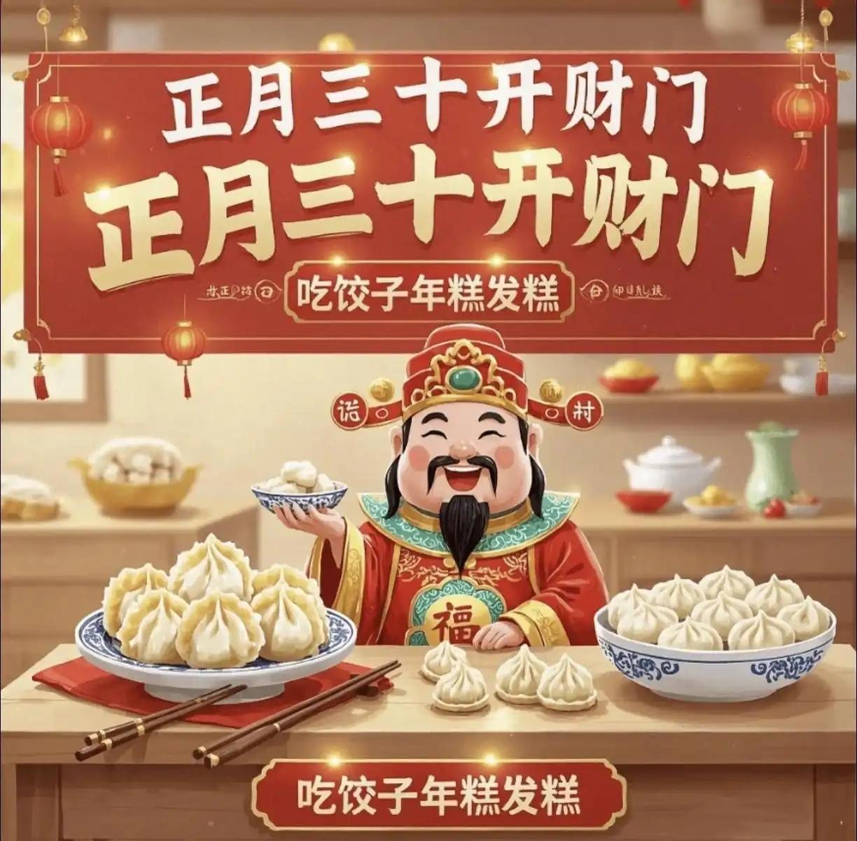 正月三十的"開",指的是"開財門"——但這次不是"打開",而是"重新開啓"並"正式封閉"。和大年三十不同,正月三十的財門儀式是"收關"性質。經過整整一個月的"過年狀態",家裏的財門其實一直開着(正月裏一般不大掃除、不關門禁)。到了正月三十,要在黃昏時分重新"開"一次財門,然後正式"封門",把正月的福氣收進家裏,防止流散。