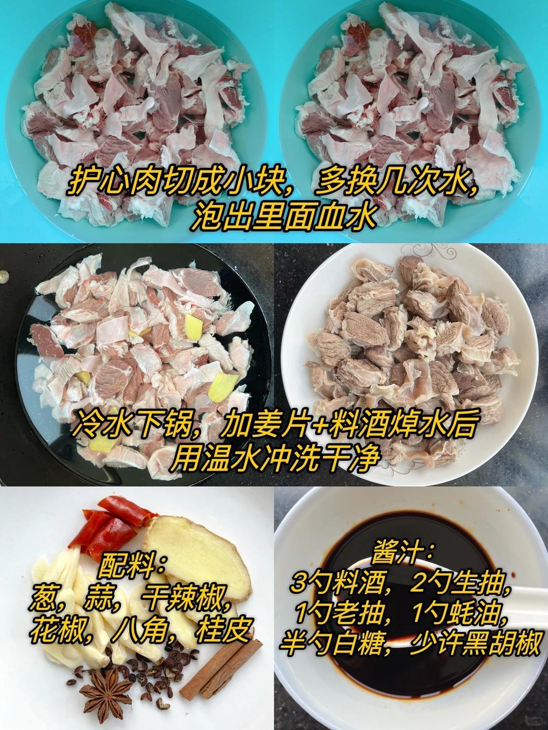 另外提醒大家,護心肉不用囤,現買現做口感最好。它筋膜多,一定要燉軟爛,新手可以多燉10分鐘,不塞牙。