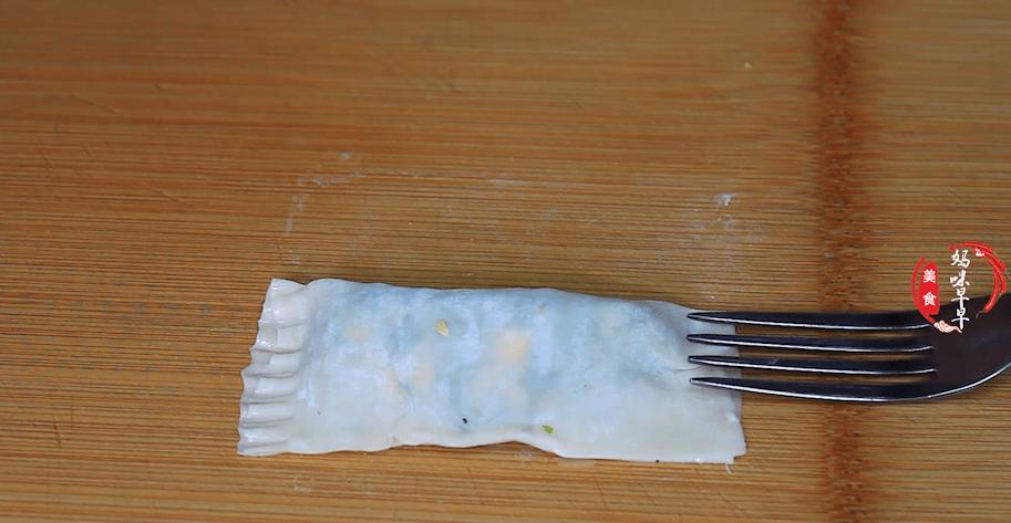 7、然後將邊緣部分先壓緊,接着再用叉子將邊緣壓一壓,這樣不僅好看,而且更加緊實。