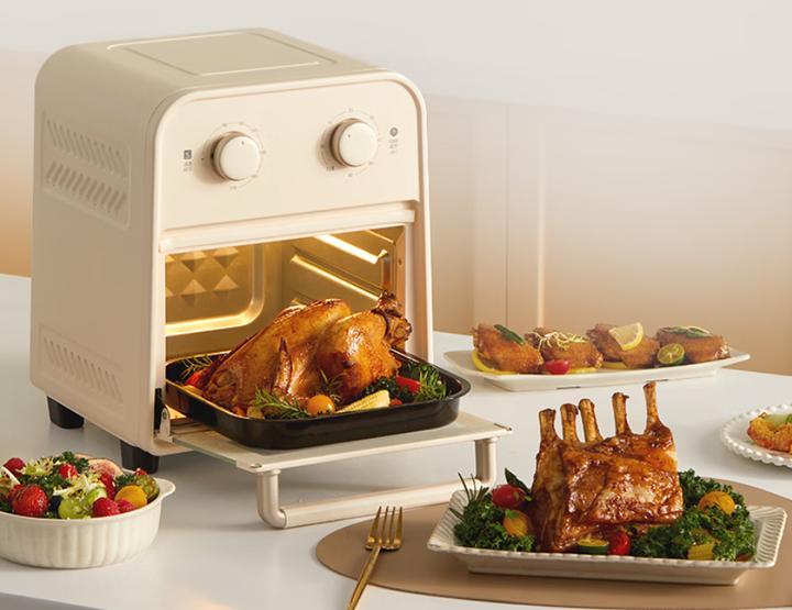 兼顧空氣炸和烤箱優勢,可空氣炸、烘烤、烘焙、發酵,部分支持上下獨立控溫,容量也介於兩者之間,一般是15-30L,適合2-4人家庭,能實現既想喫少油油炸食品,又想偶爾烘焙,不想買兩臺設備,節省空間。
