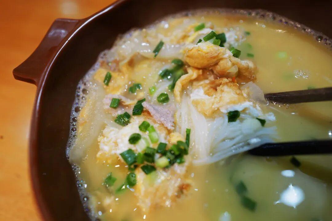 很豐富的一碗粉,有肉片、雞蛋碎、大白菜,還加了絲瓜。湯底用的也是高湯,喫起來很有家的味道。
