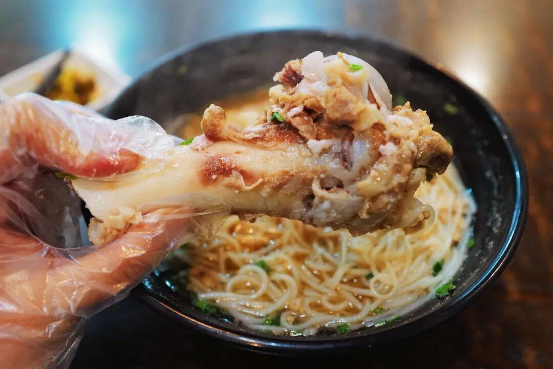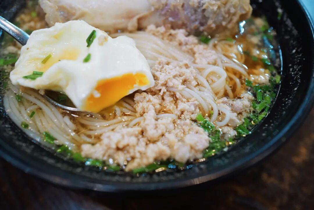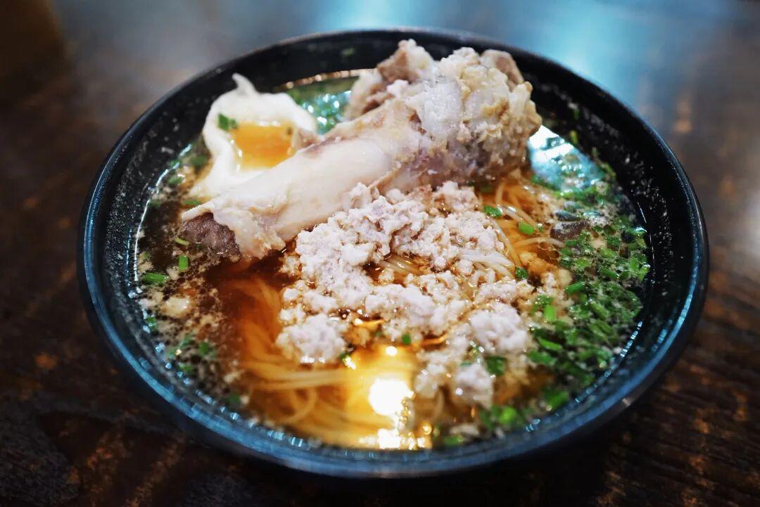 我點了碗招牌筒子骨頭粉,20元,份量很足。一整根筒子骨,一大勺碎肉,底下還藏了顆溏心蛋。